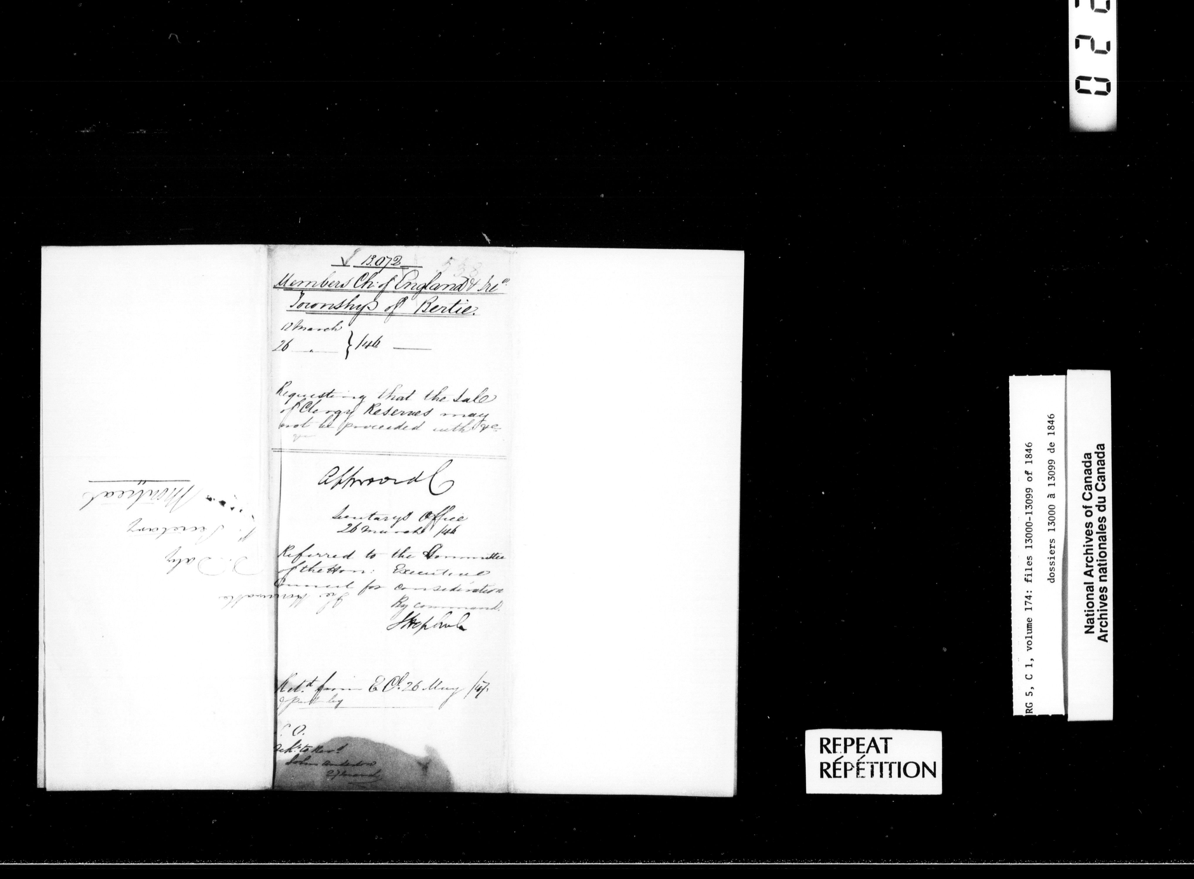 Canada West : Provincial Secretary, numbered correspondence files, 1844 to 1867 - 2365