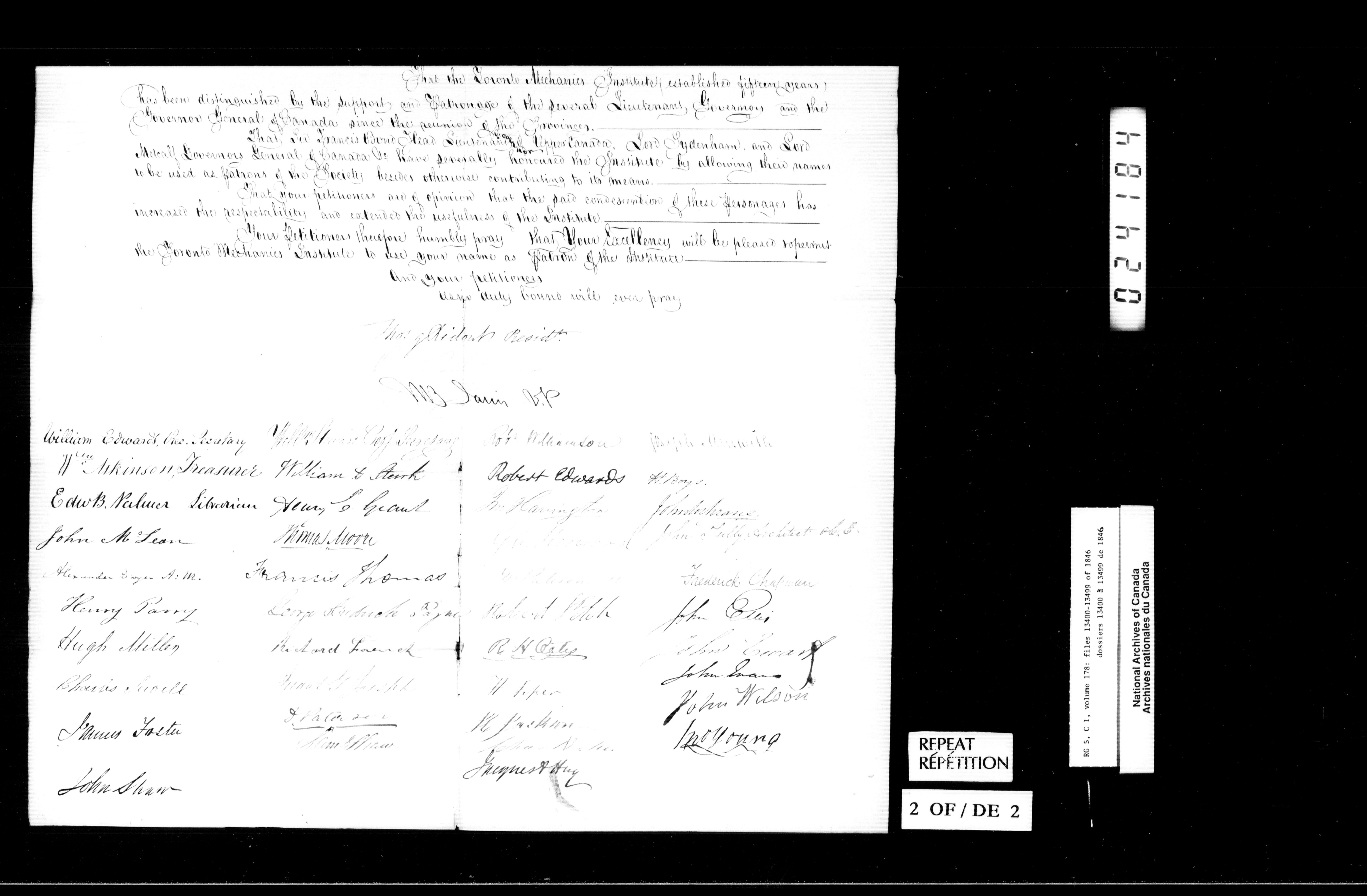 Canada West : Provincial Secretary, numbered correspondence files, 1844 to 1867 - 2366