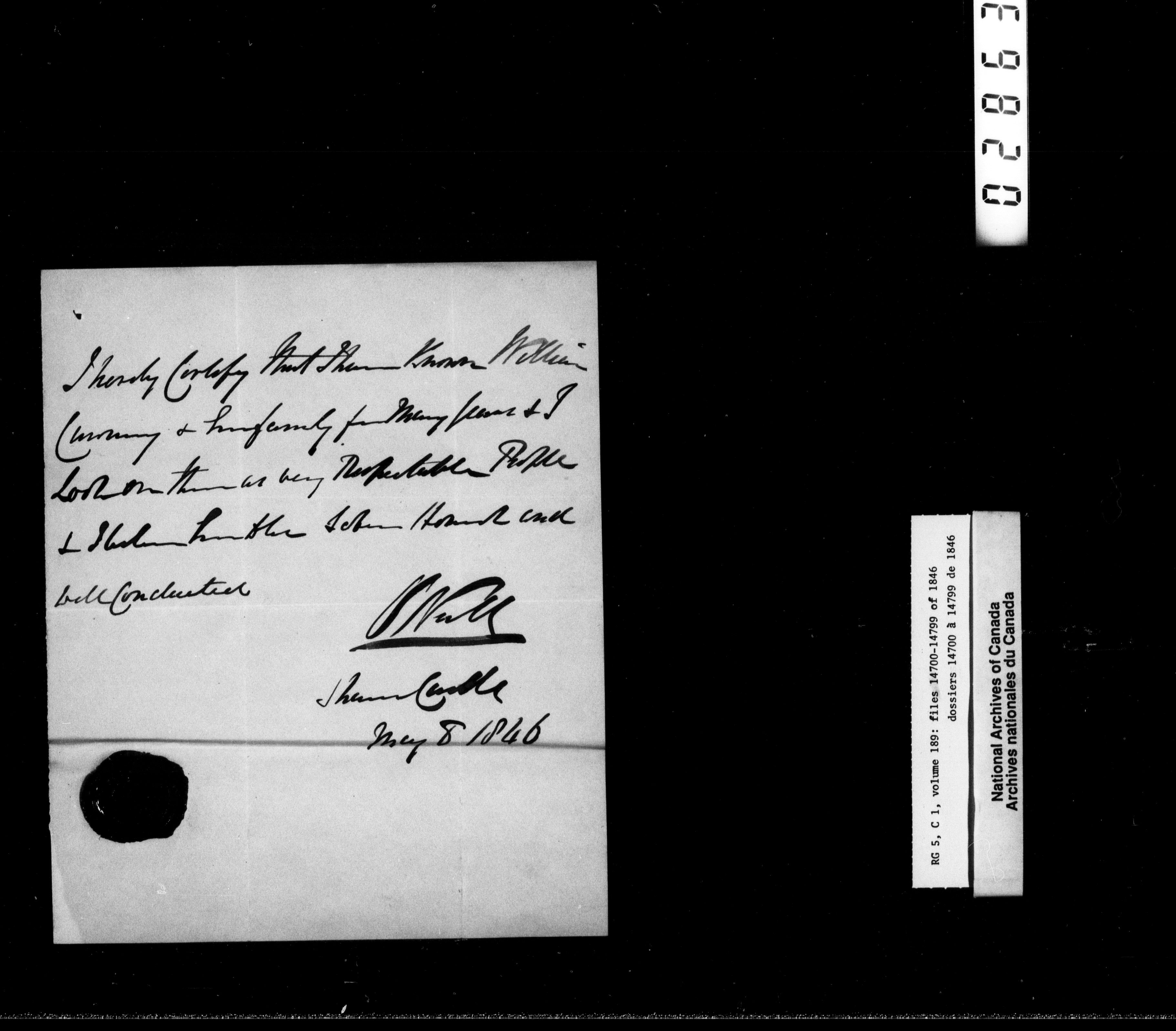 Canada West : Provincial Secretary, numbered correspondence files, 1844 to 1867 - 2369