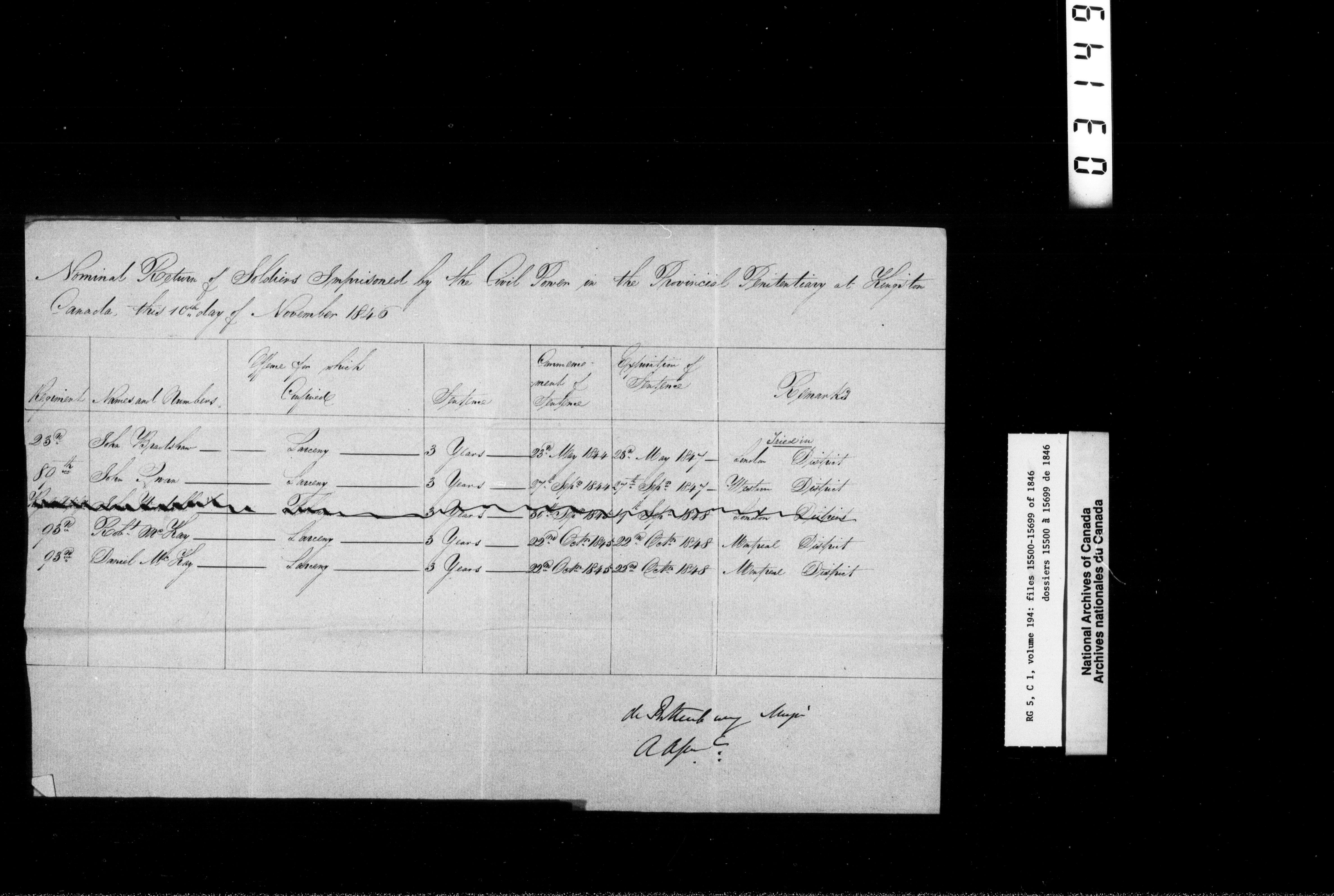 Canada West : Provincial Secretary, numbered correspondence files, 1844 to 1867 - 2370