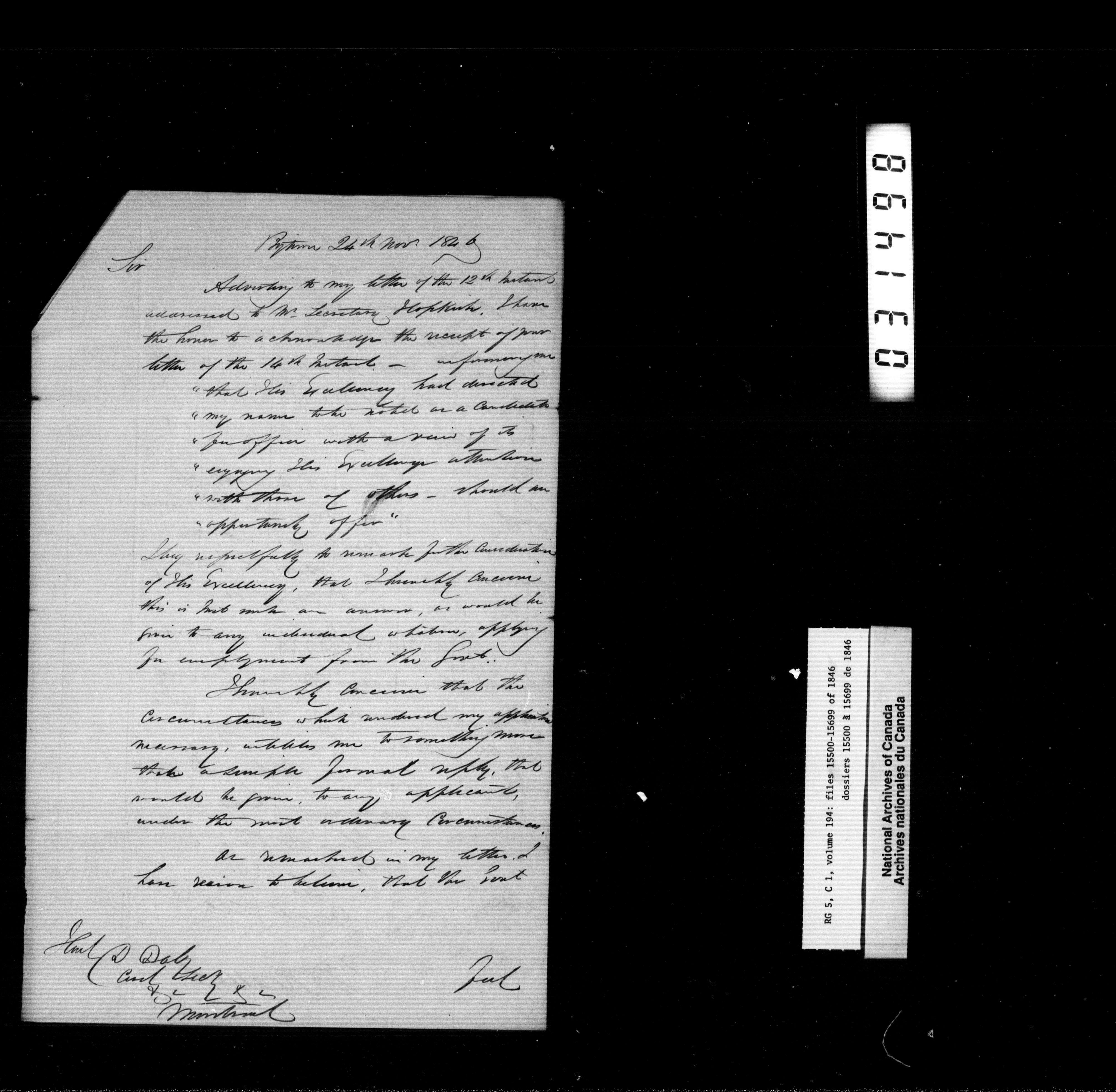 Canada West : Provincial Secretary, numbered correspondence files, 1844 to 1867 - 2370