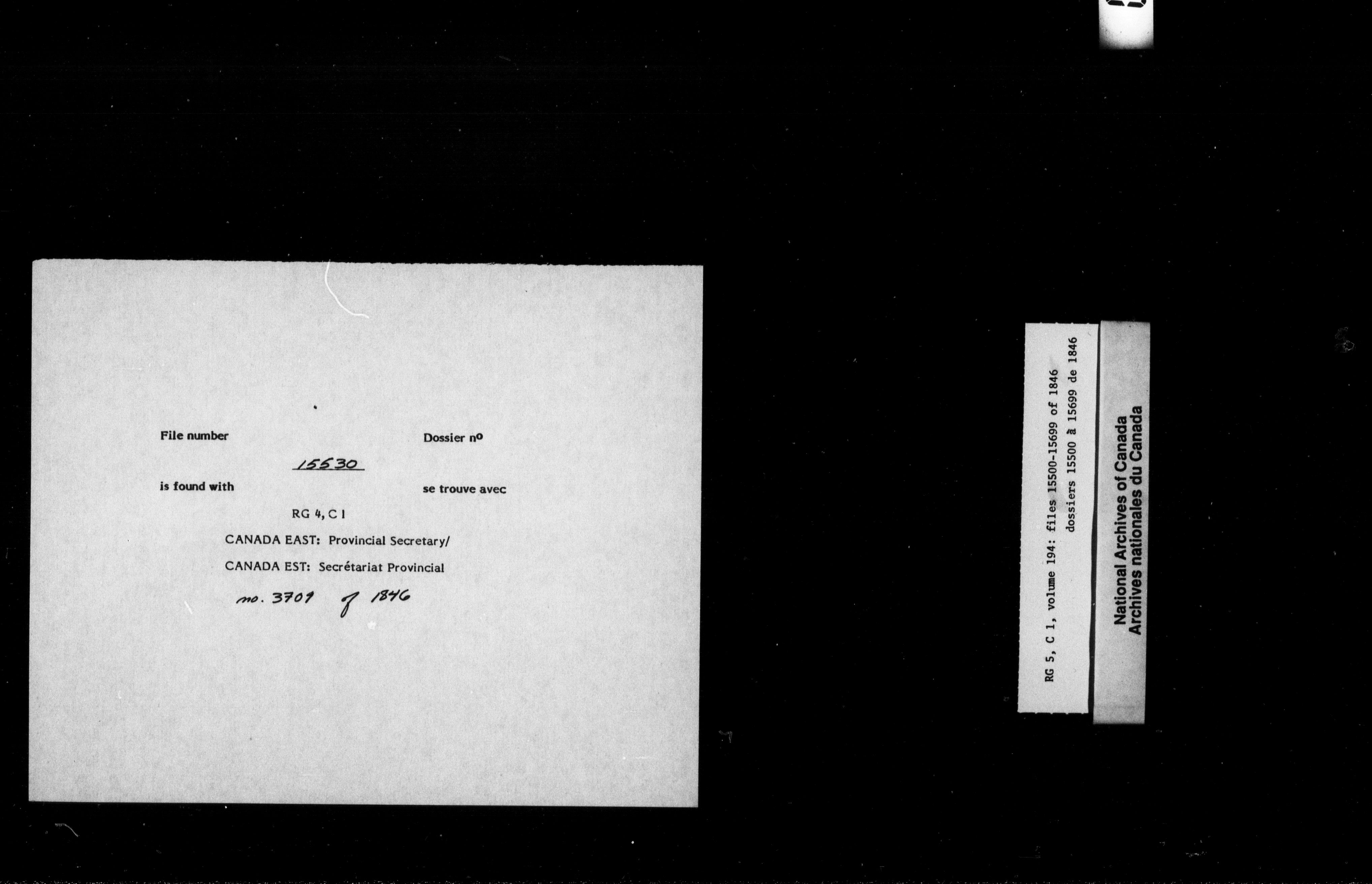 Canada West : Provincial Secretary, numbered correspondence files, 1844 to 1867 - 2370