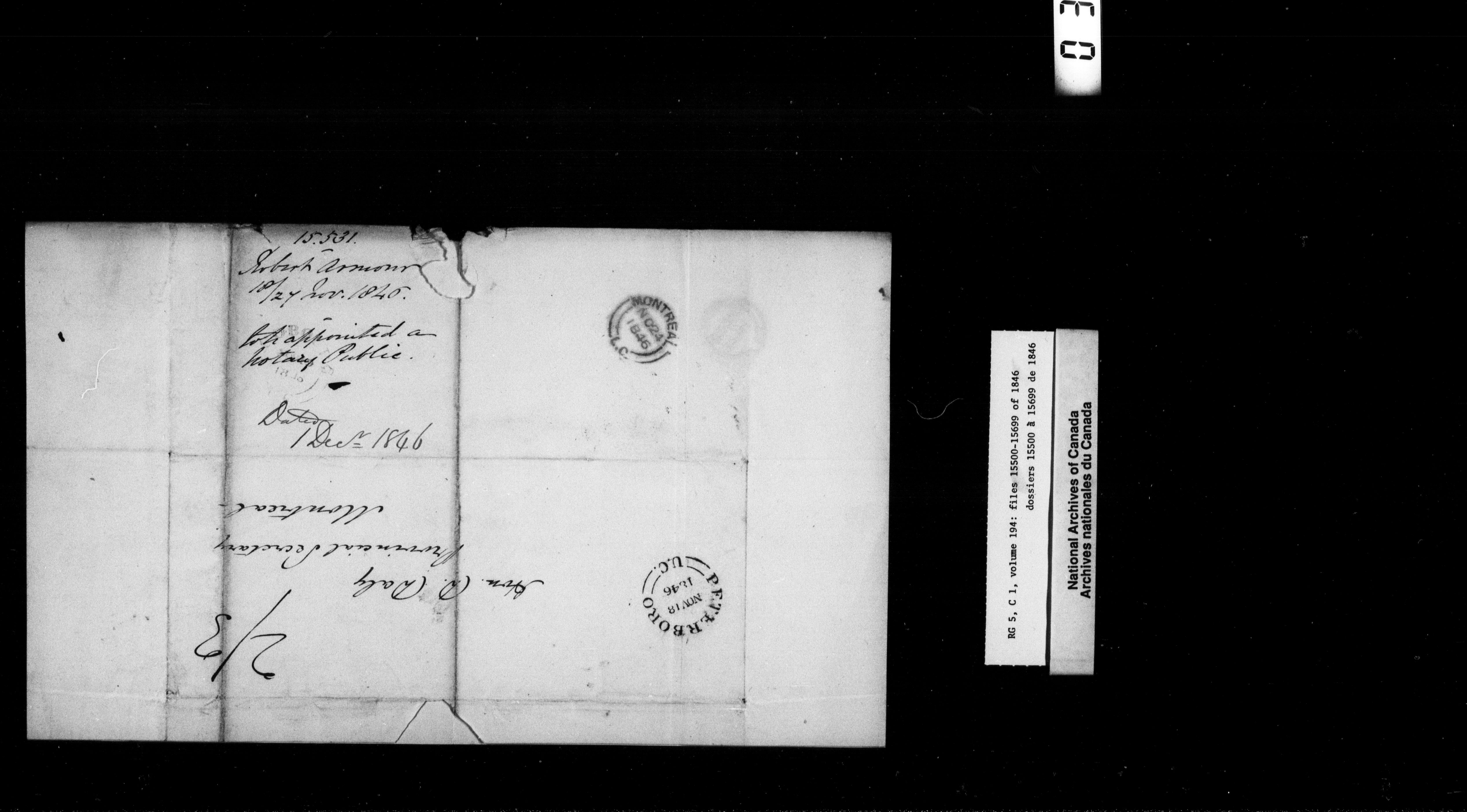 Canada West : Provincial Secretary, numbered correspondence files, 1844 to 1867 - 2370