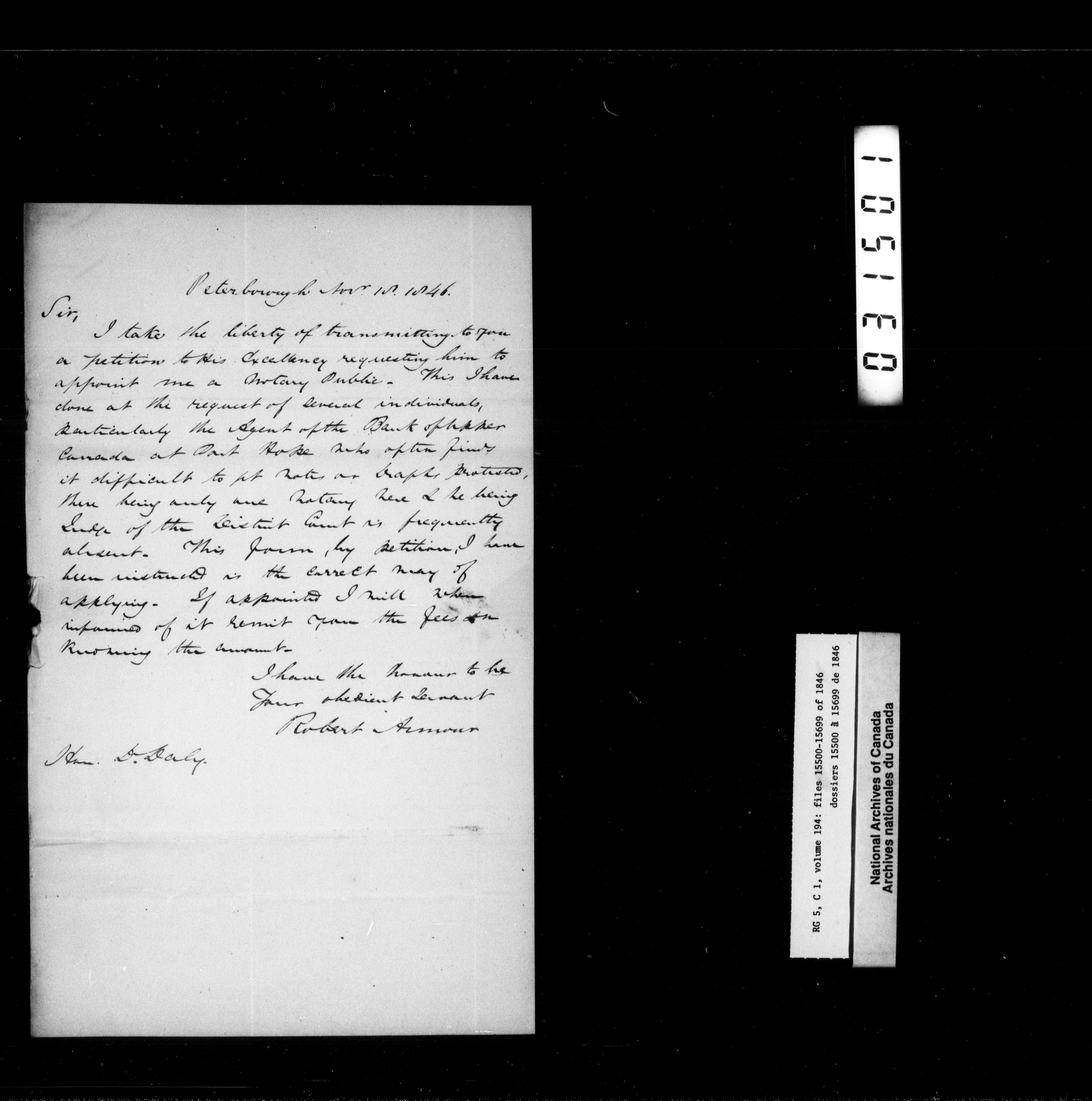 Canada West : Provincial Secretary, numbered correspondence files, 1844 to 1867 - 2370