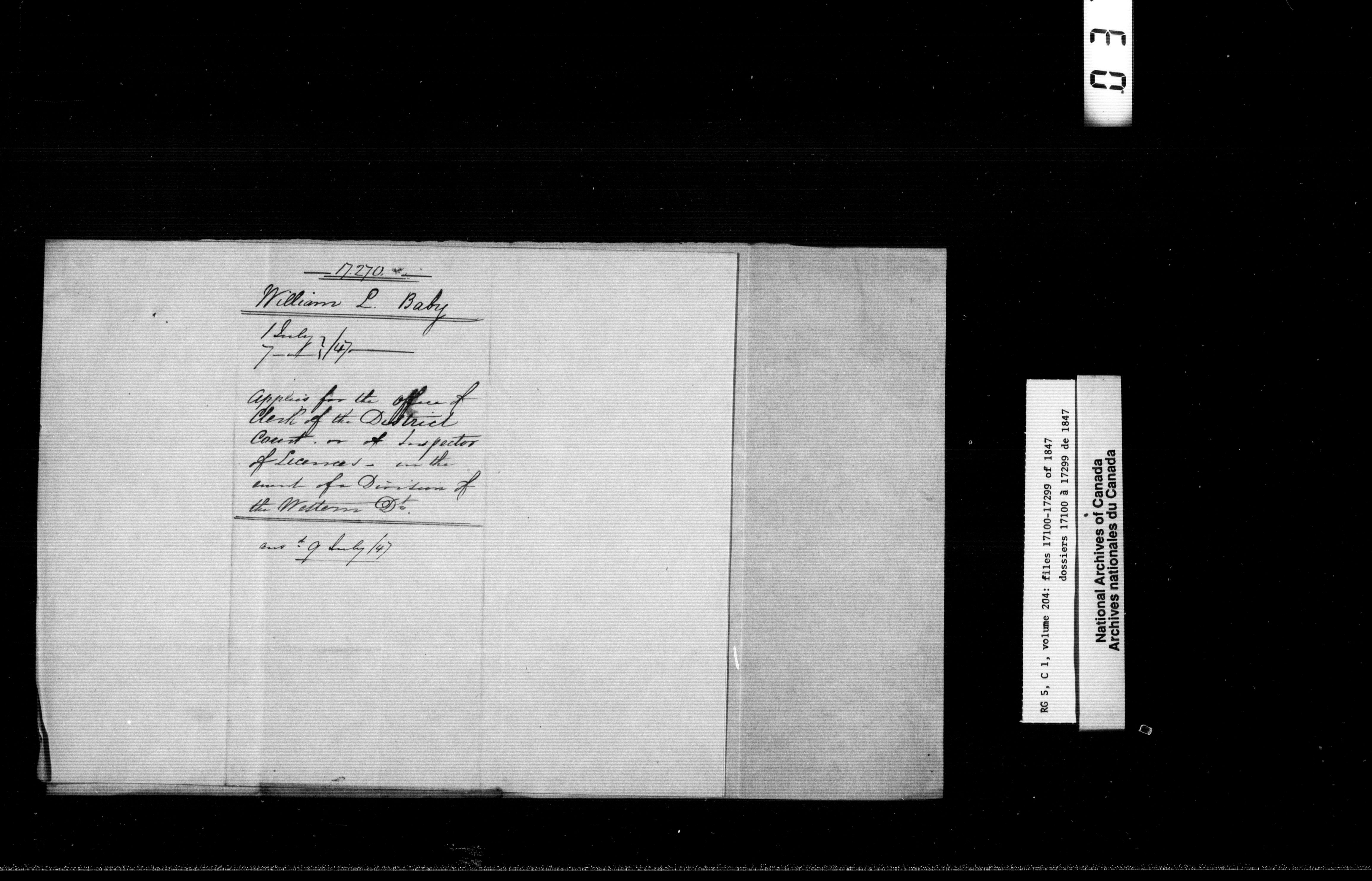 Canada West : Provincial Secretary, numbered correspondence files, 1844 to 1867 - 2375