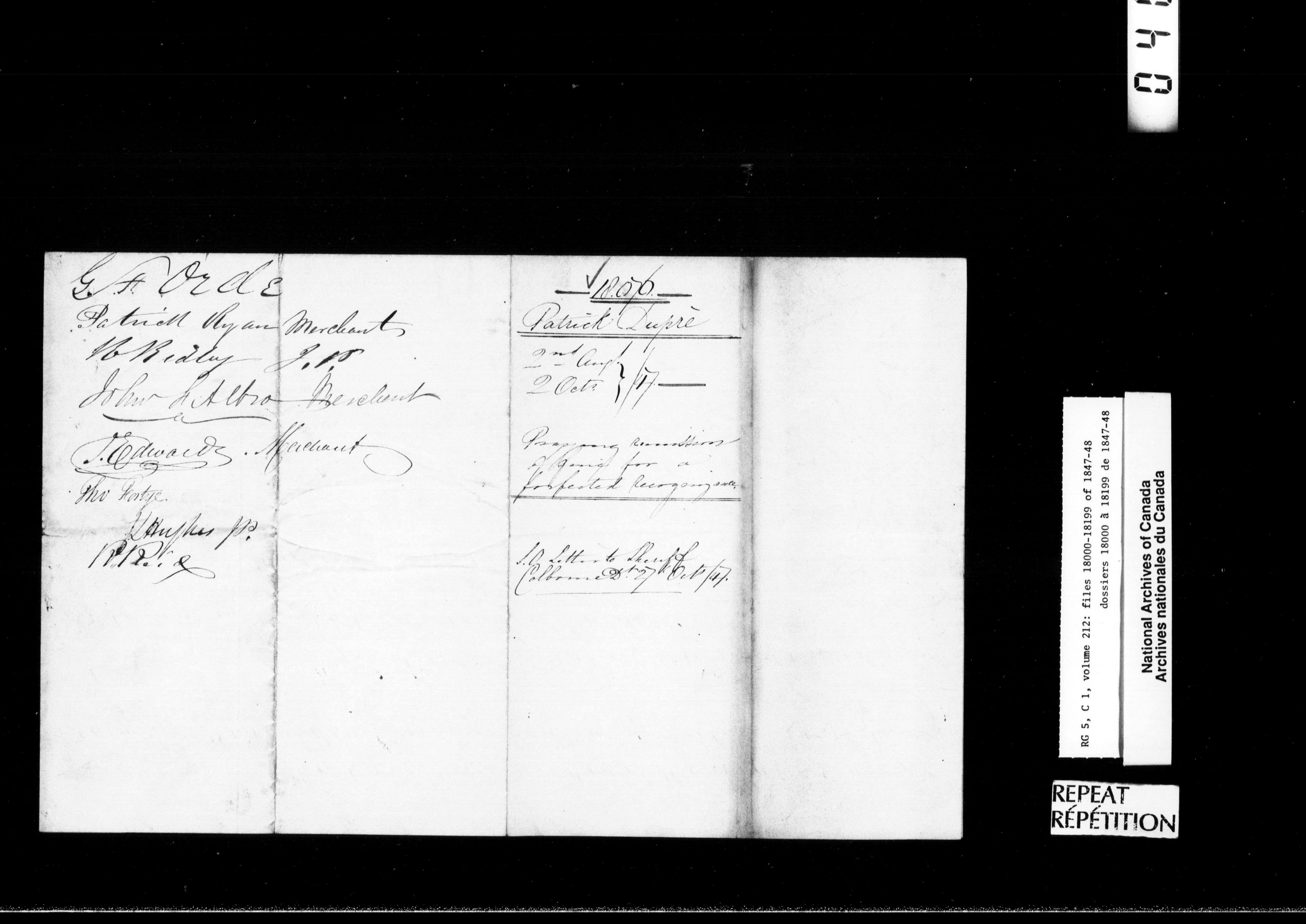 Canada West : Provincial Secretary, numbered correspondence files, 1844 to 1867 - 2376