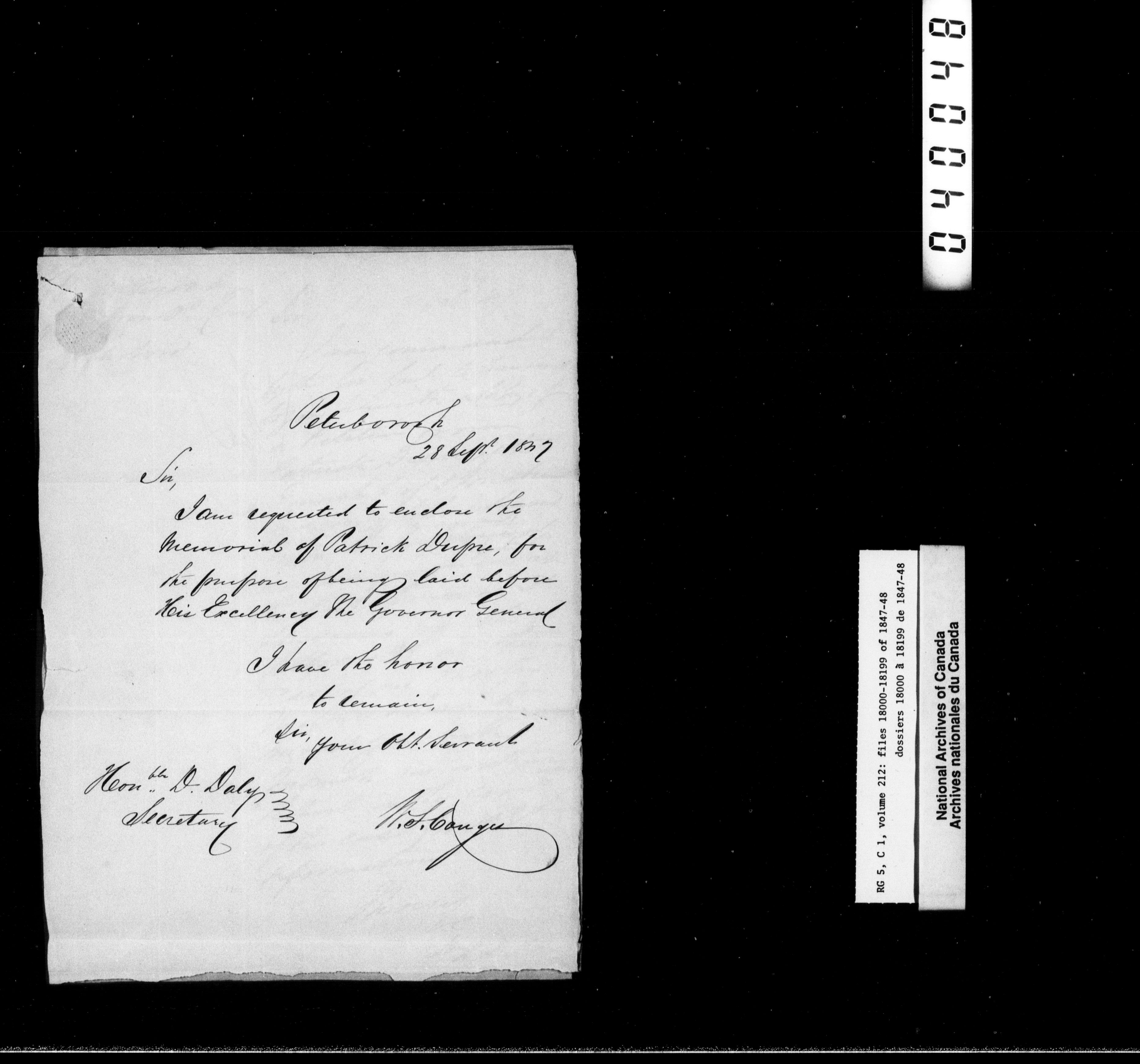 Canada West : Provincial Secretary, numbered correspondence files, 1844 to 1867 - 2376