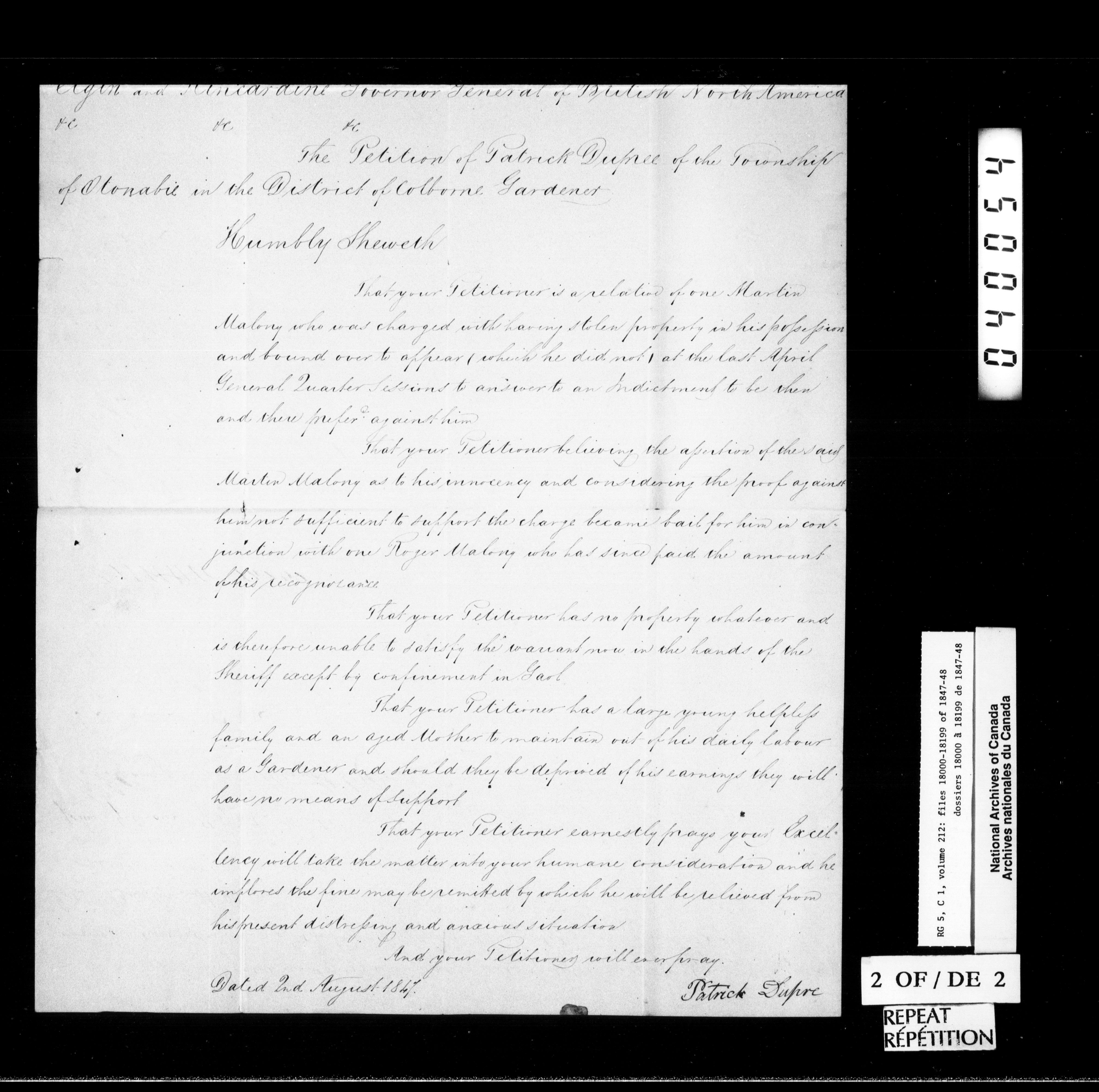 Canada West : Provincial Secretary, numbered correspondence files, 1844 to 1867 - 2376
