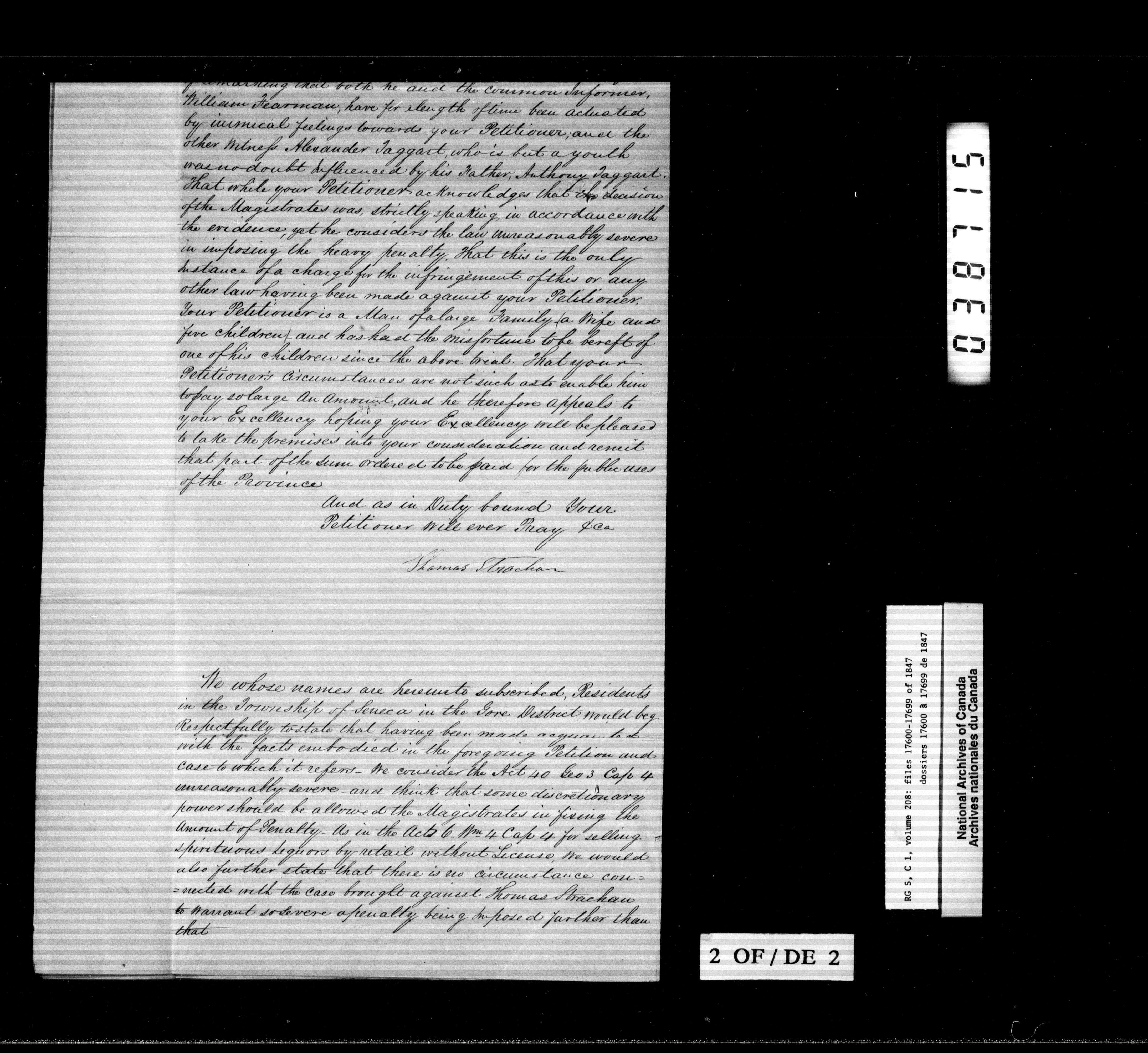 Canada West : Provincial Secretary, numbered correspondence files, 1844 to 1867 - 2376