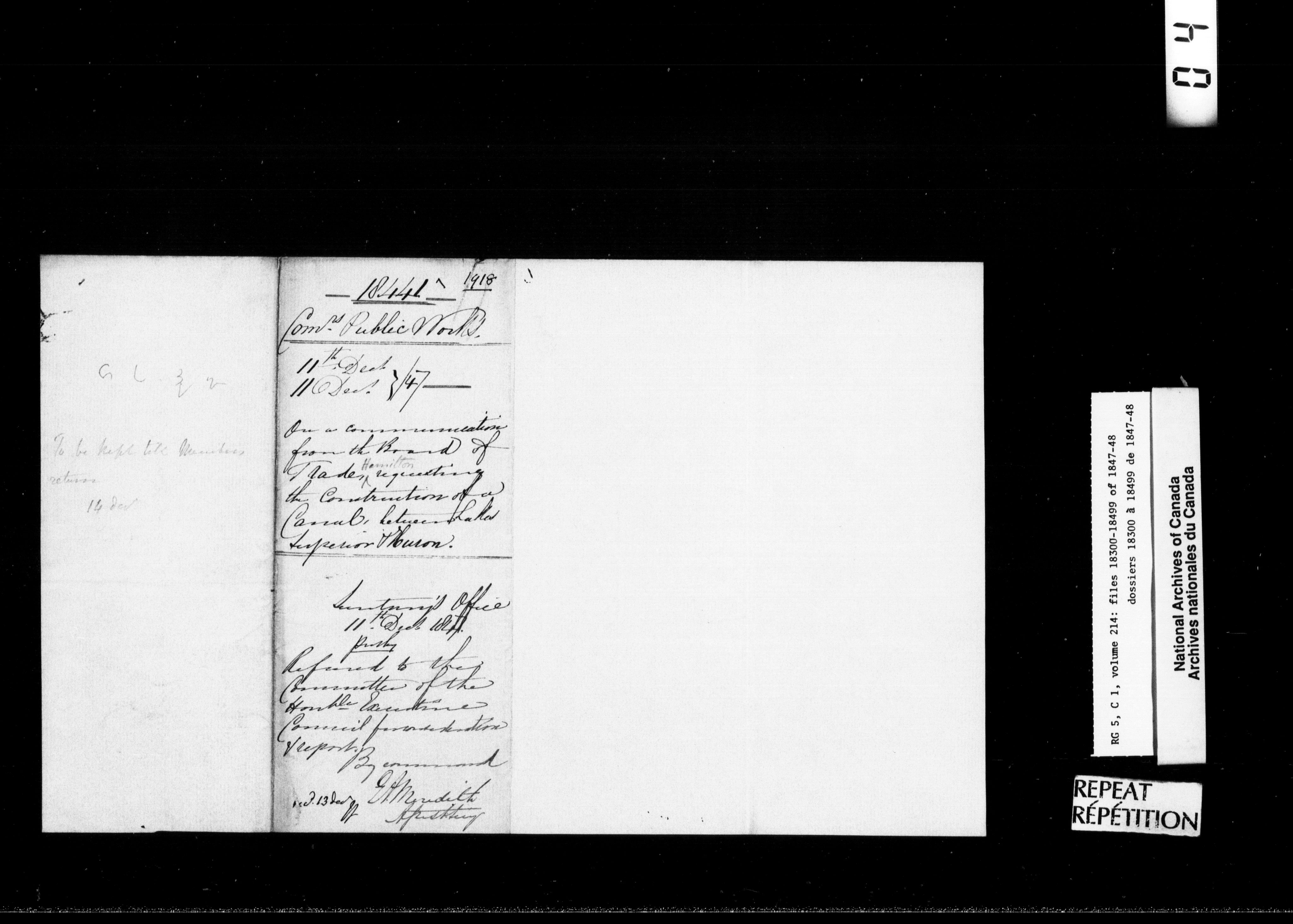 Canada West : Provincial Secretary, numbered correspondence files, 1844 to 1867 - 2377