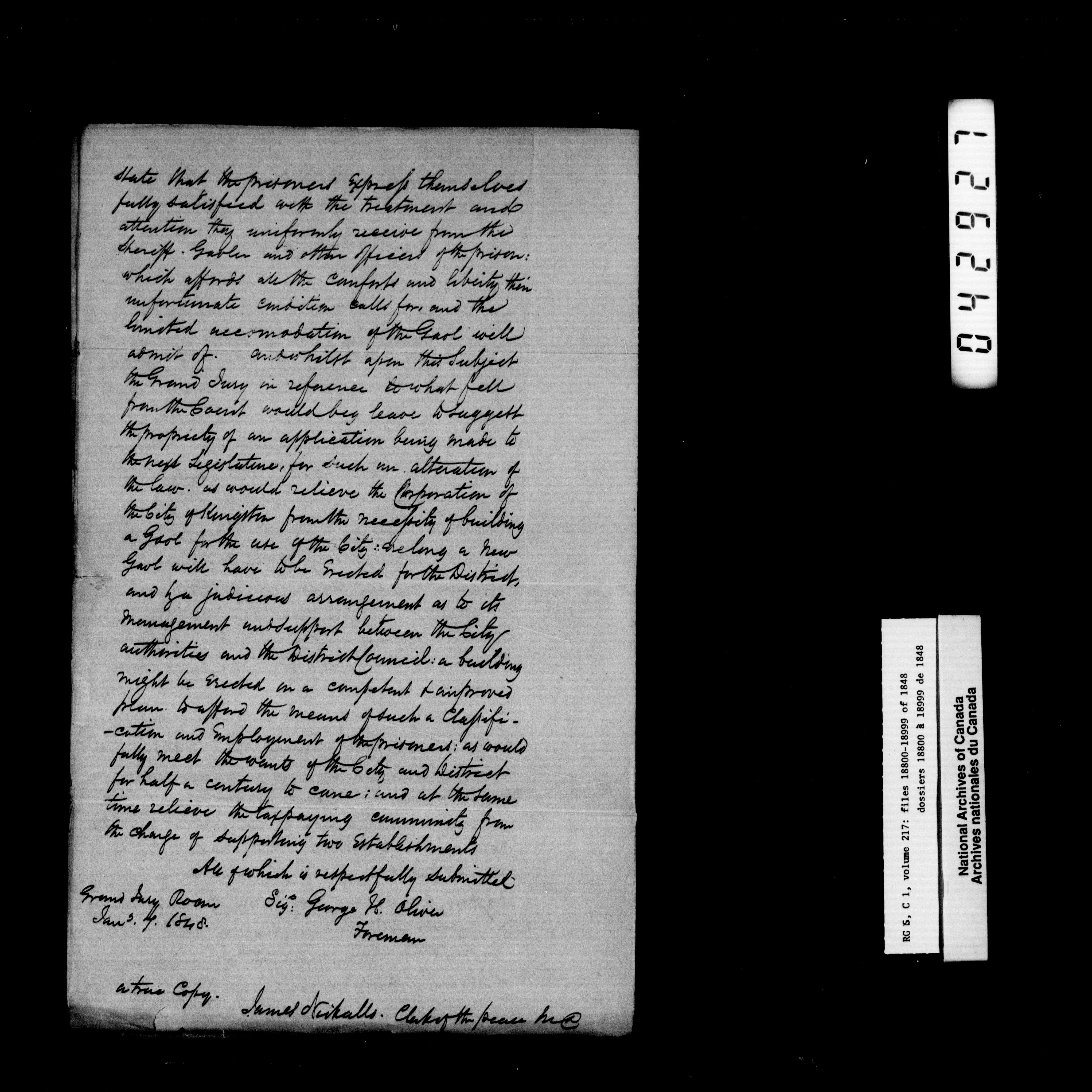 Canada West : Provincial Secretary, numbered correspondence files, 1844 to 1867 - 2378