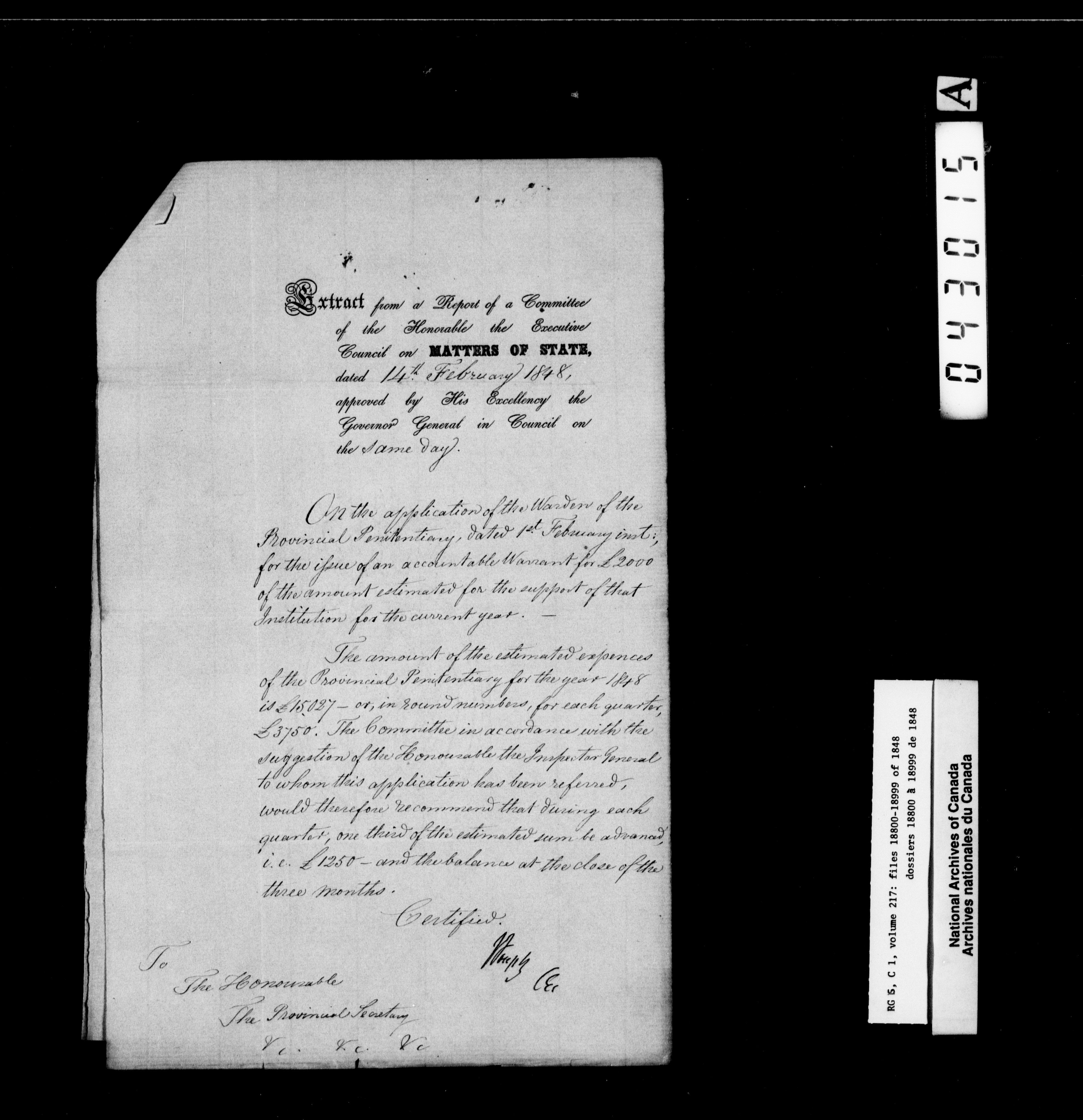 Canada West : Provincial Secretary, numbered correspondence files, 1844 to 1867 : H-2379