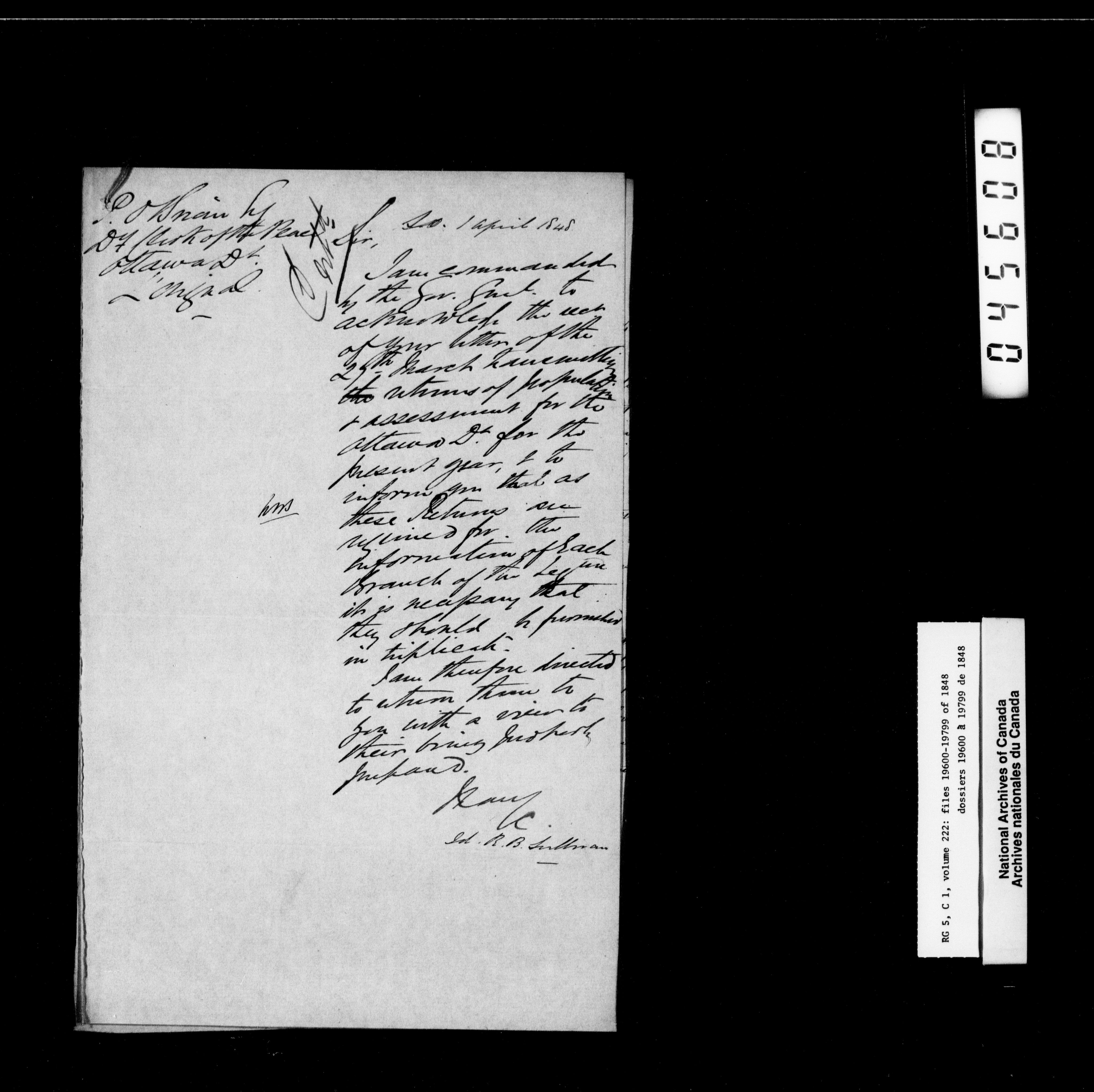 Canada West : Provincial Secretary, numbered correspondence files, 1844 to 1867 : H-2380