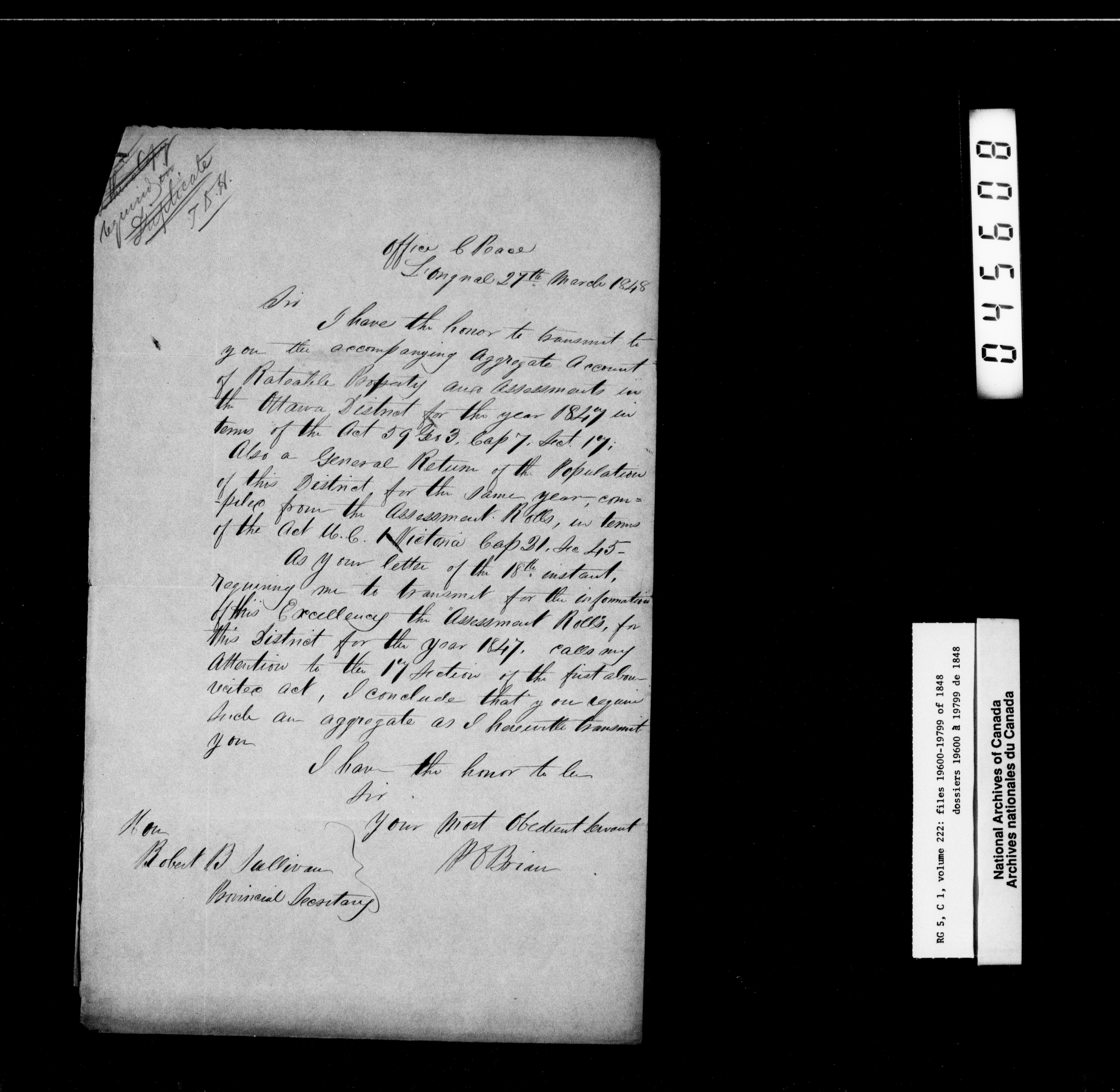 Canada West : Provincial Secretary, numbered correspondence files, 1844 to 1867 - 2380