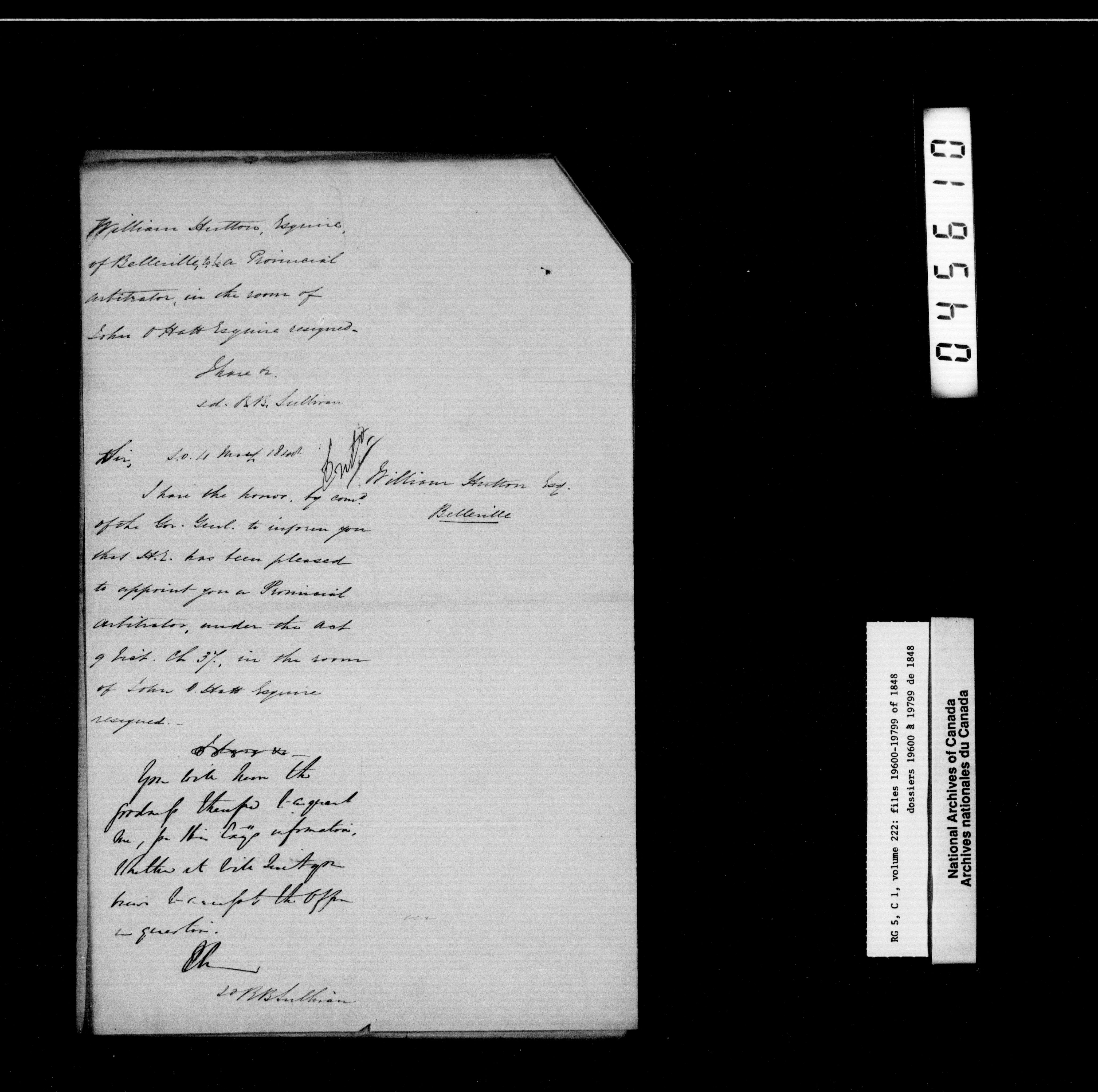 Canada West : Provincial Secretary, numbered correspondence files, 1844 to 1867 - 2380