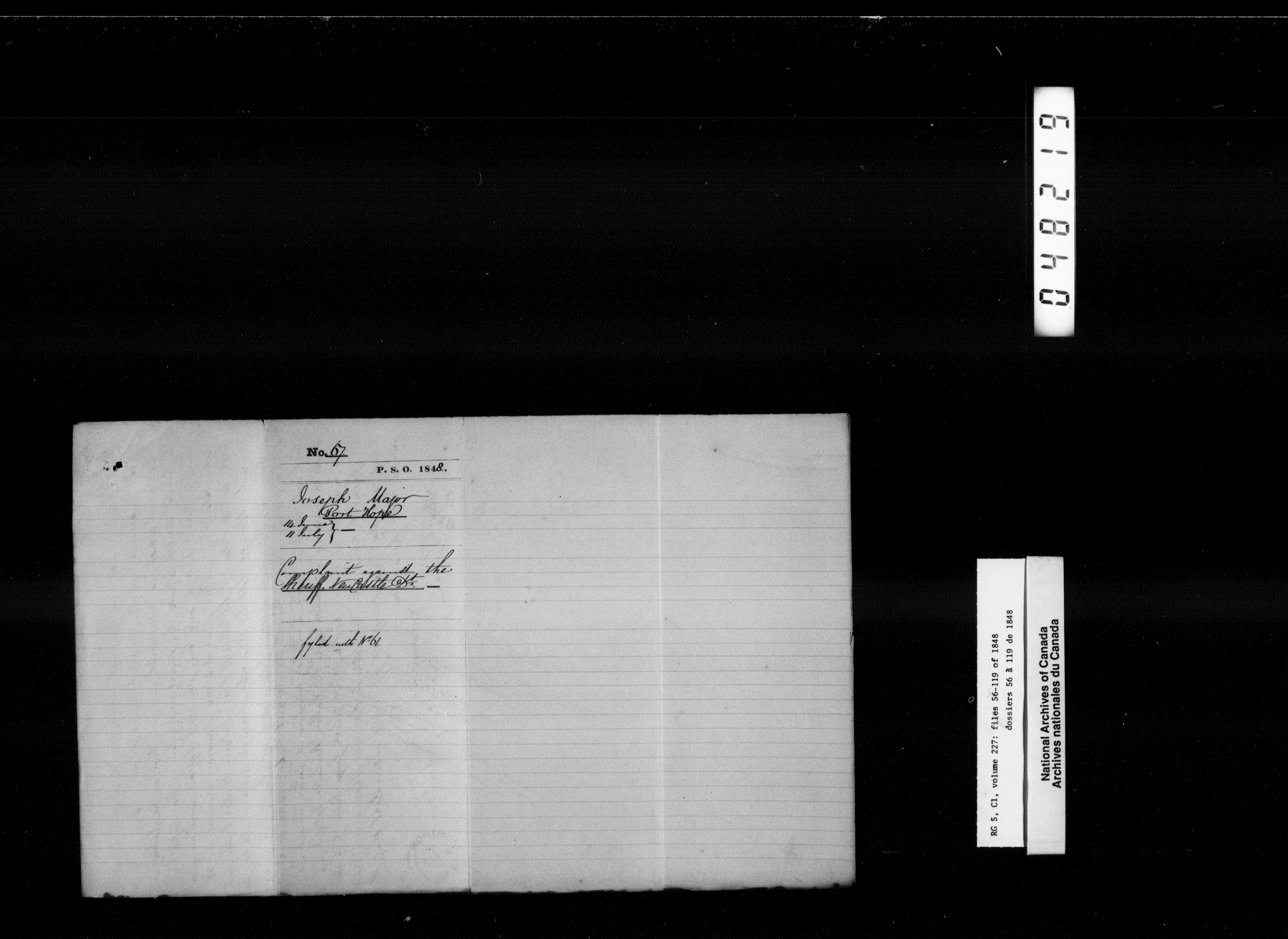 Canada West : Provincial Secretary, numbered correspondence files, 1844 to 1867 - 2382