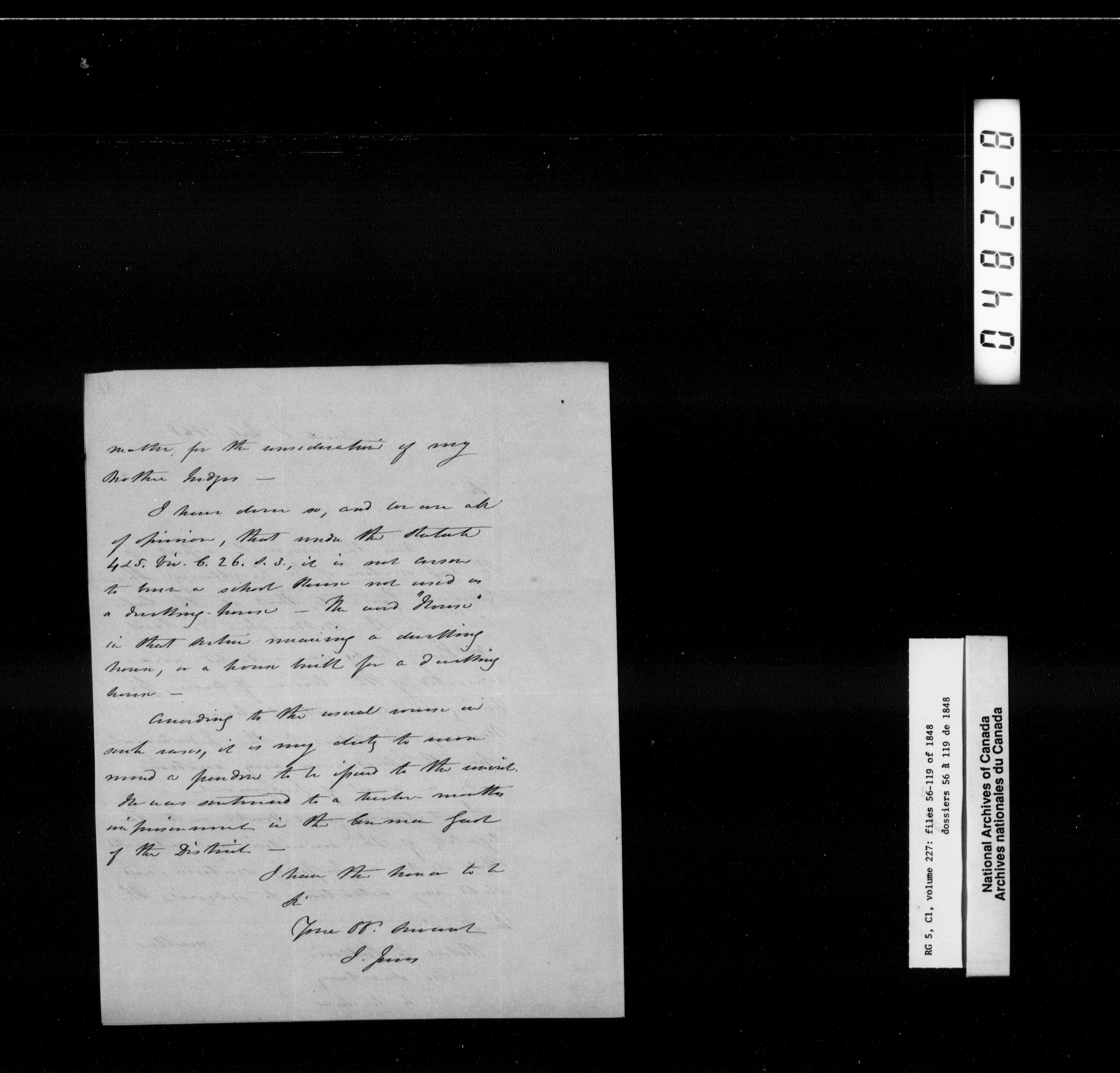 Canada West : Provincial Secretary, numbered correspondence files, 1844 to 1867 - 2382