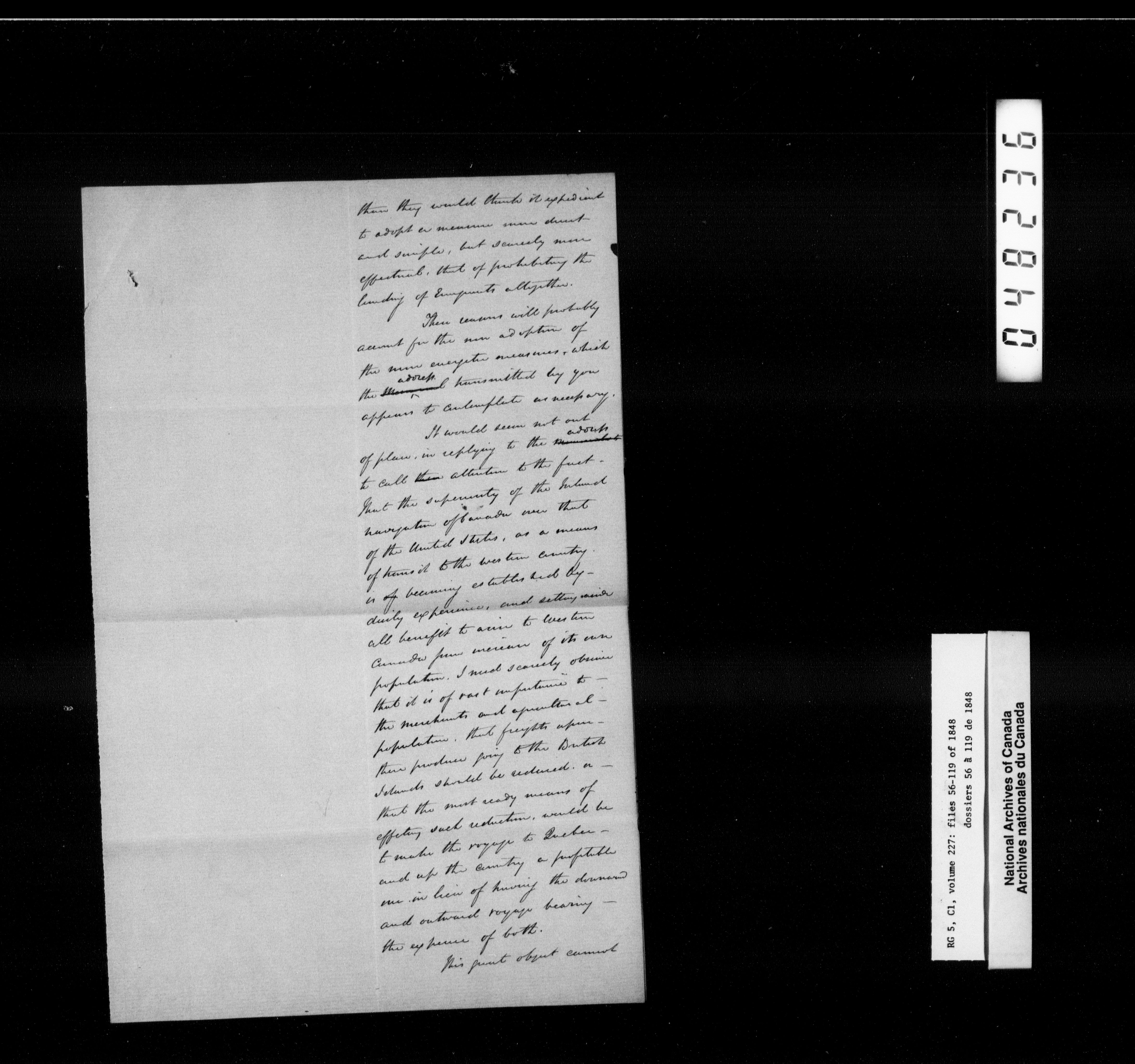 Canada West : Provincial Secretary, numbered correspondence files, 1844 to 1867 - 2382