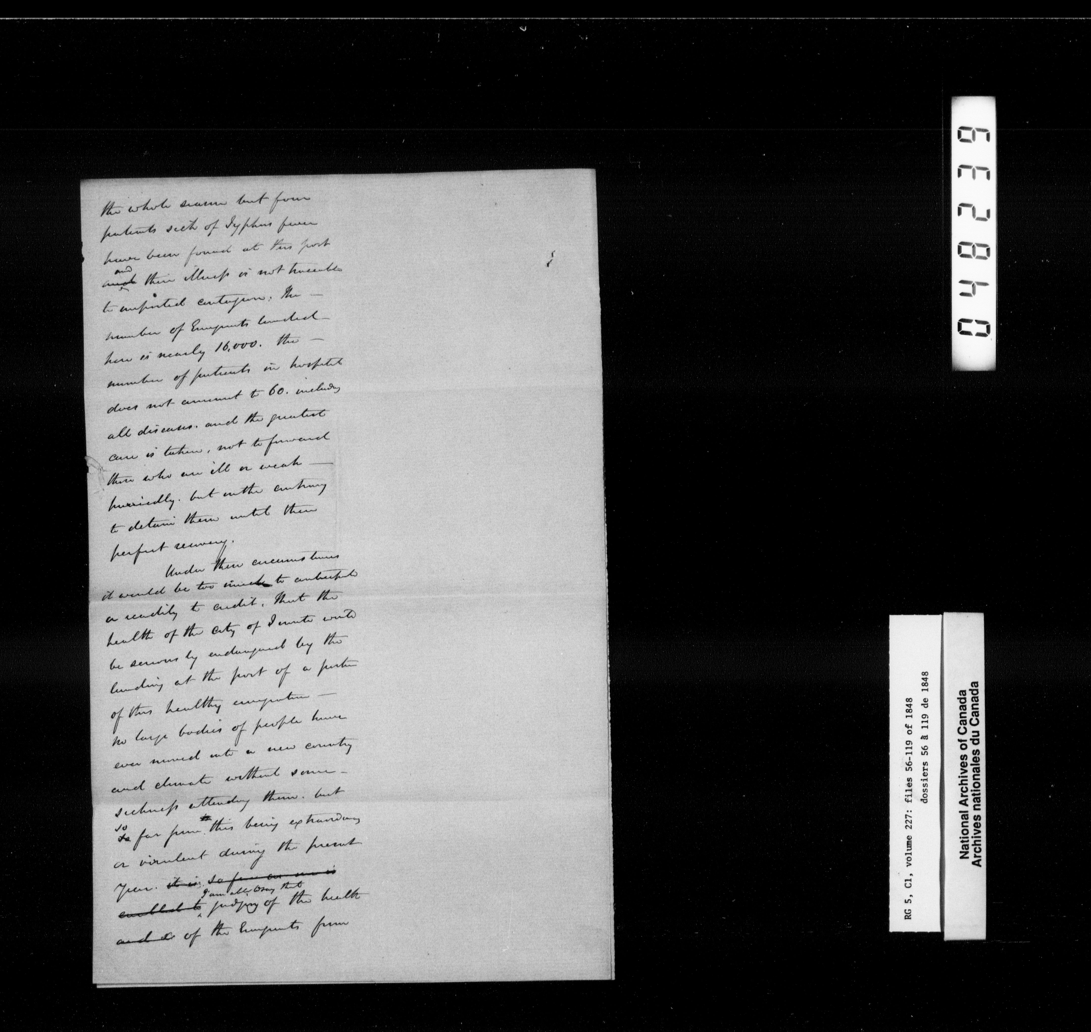 Canada West : Provincial Secretary, numbered correspondence files, 1844 to 1867 - 2382