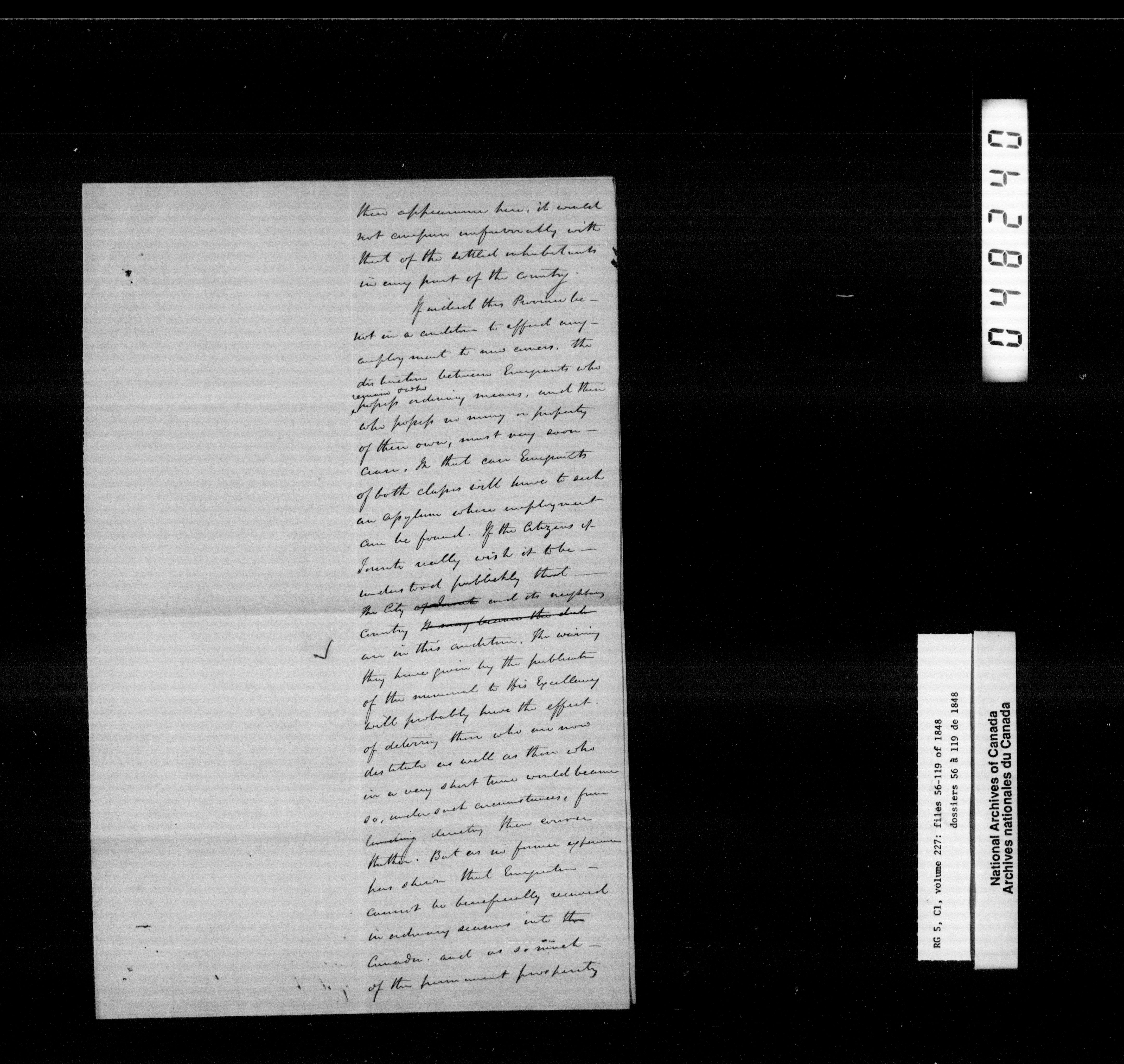 Canada West : Provincial Secretary, numbered correspondence files, 1844 to 1867 - 2382