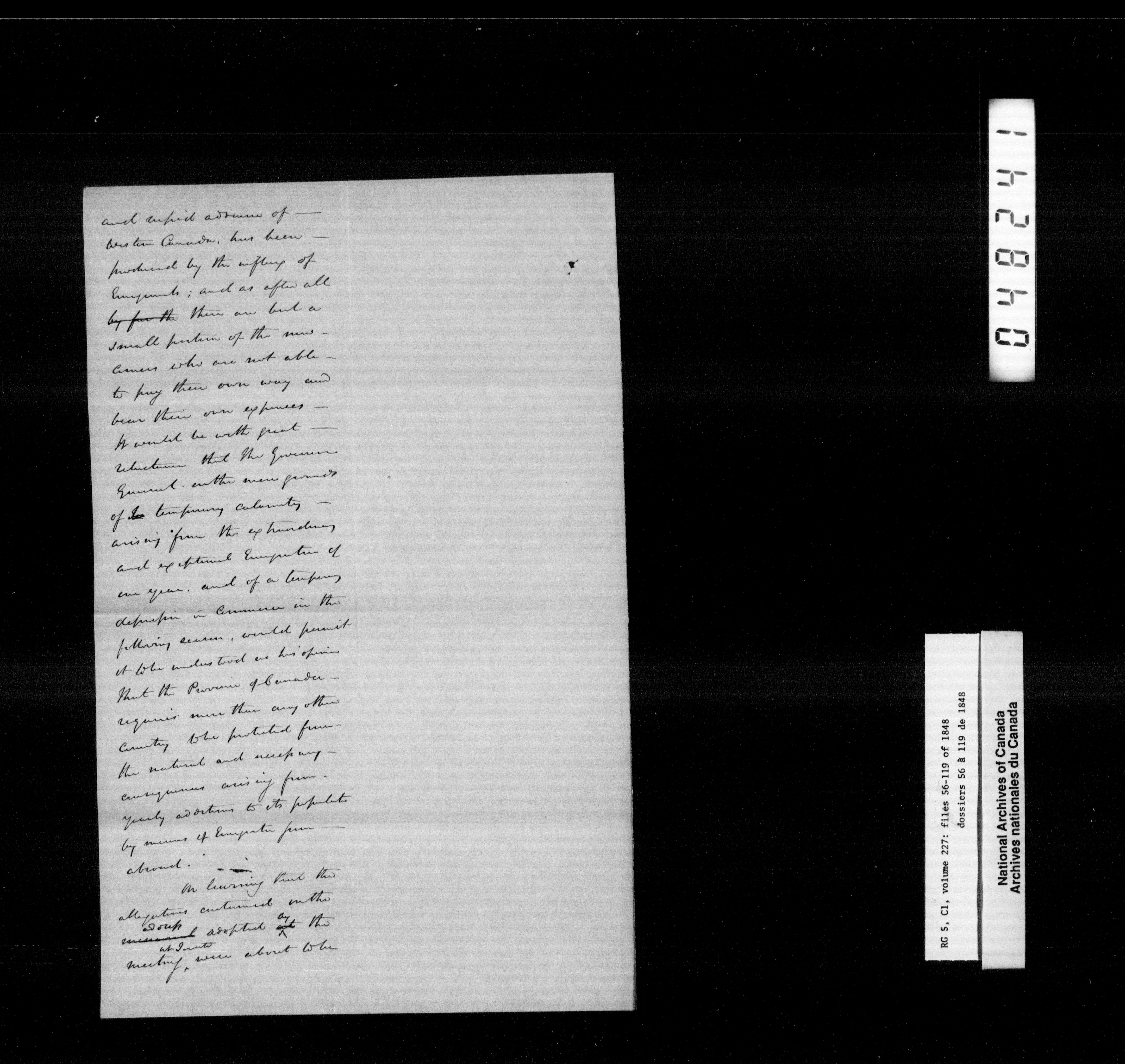 Canada West : Provincial Secretary, numbered correspondence files, 1844 to 1867 - 2382