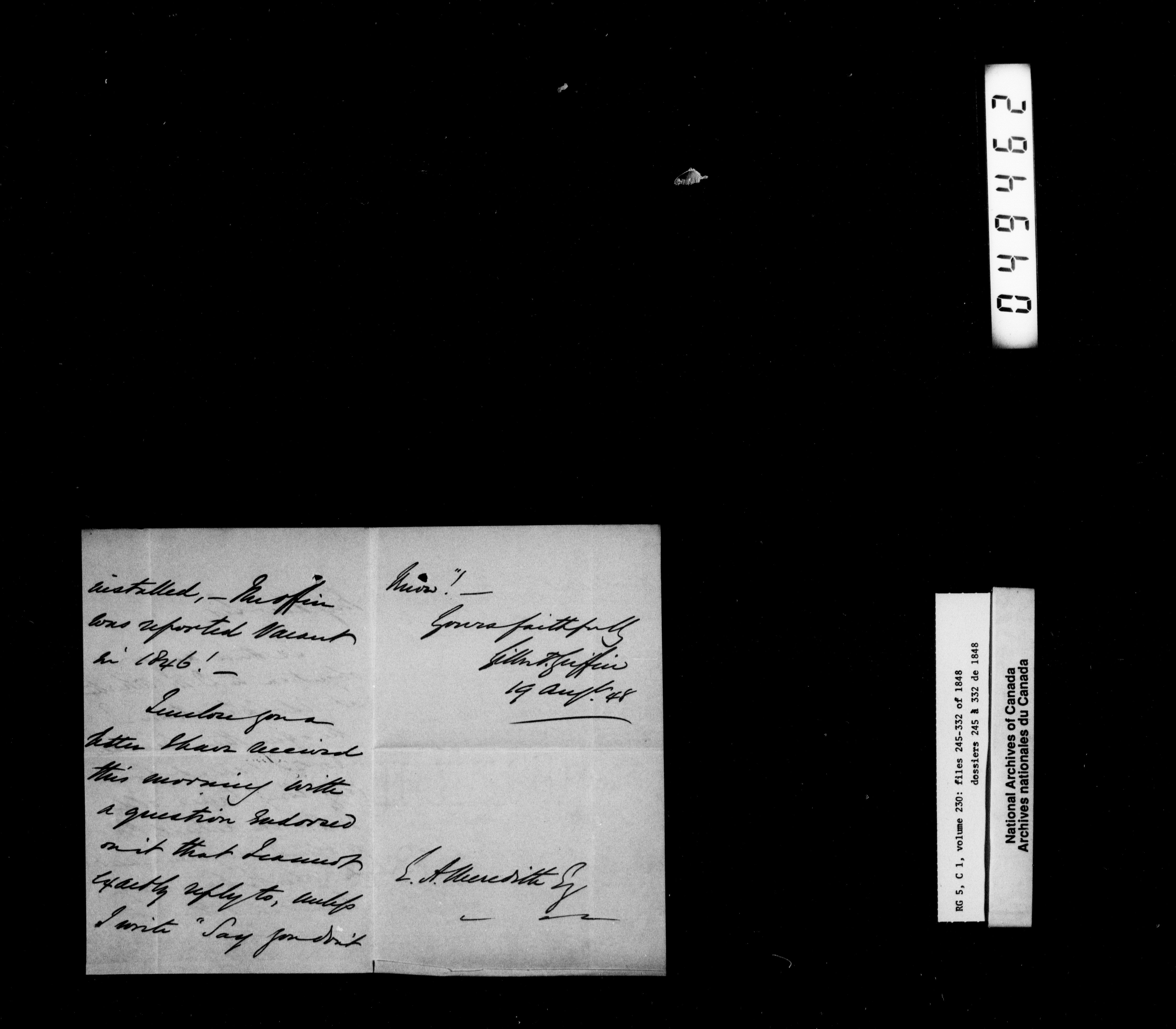 Canada West : Provincial Secretary, numbered correspondence files, 1844 to 1867 : H-2383