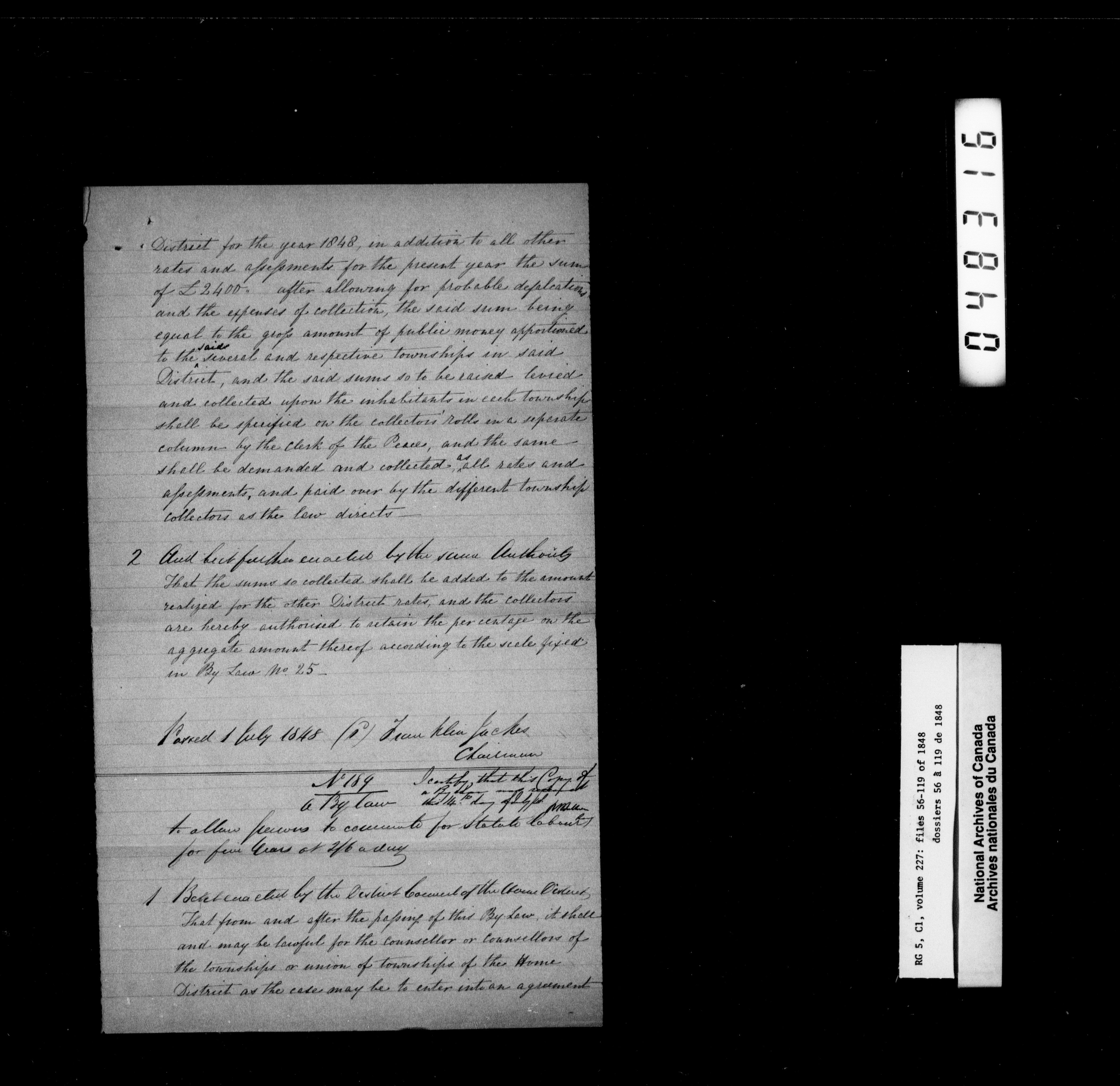 Canada West : Provincial Secretary, numbered correspondence files, 1844 to 1867 - 2383