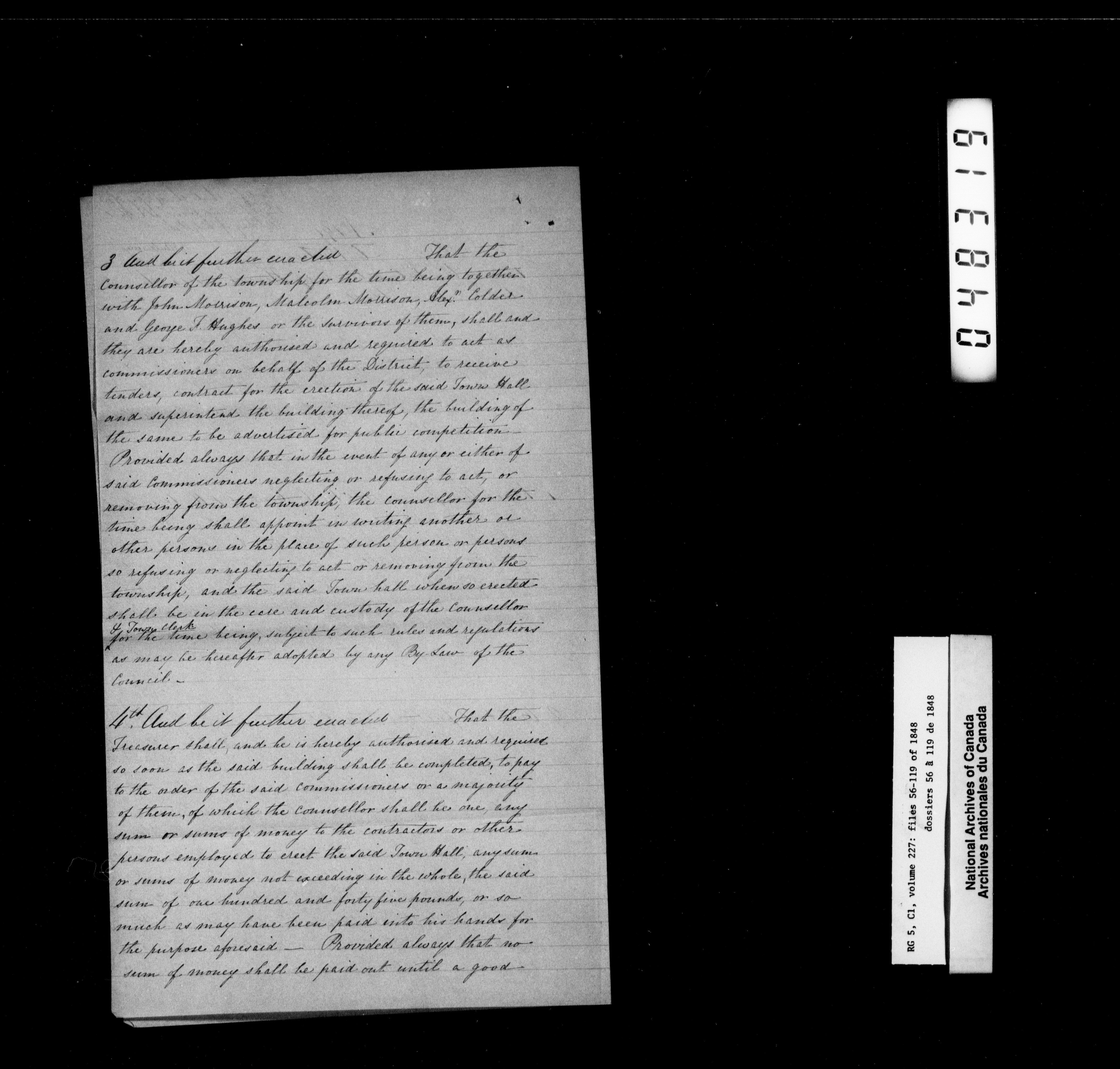 Canada West : Provincial Secretary, numbered correspondence files, 1844 to 1867 - 2383
