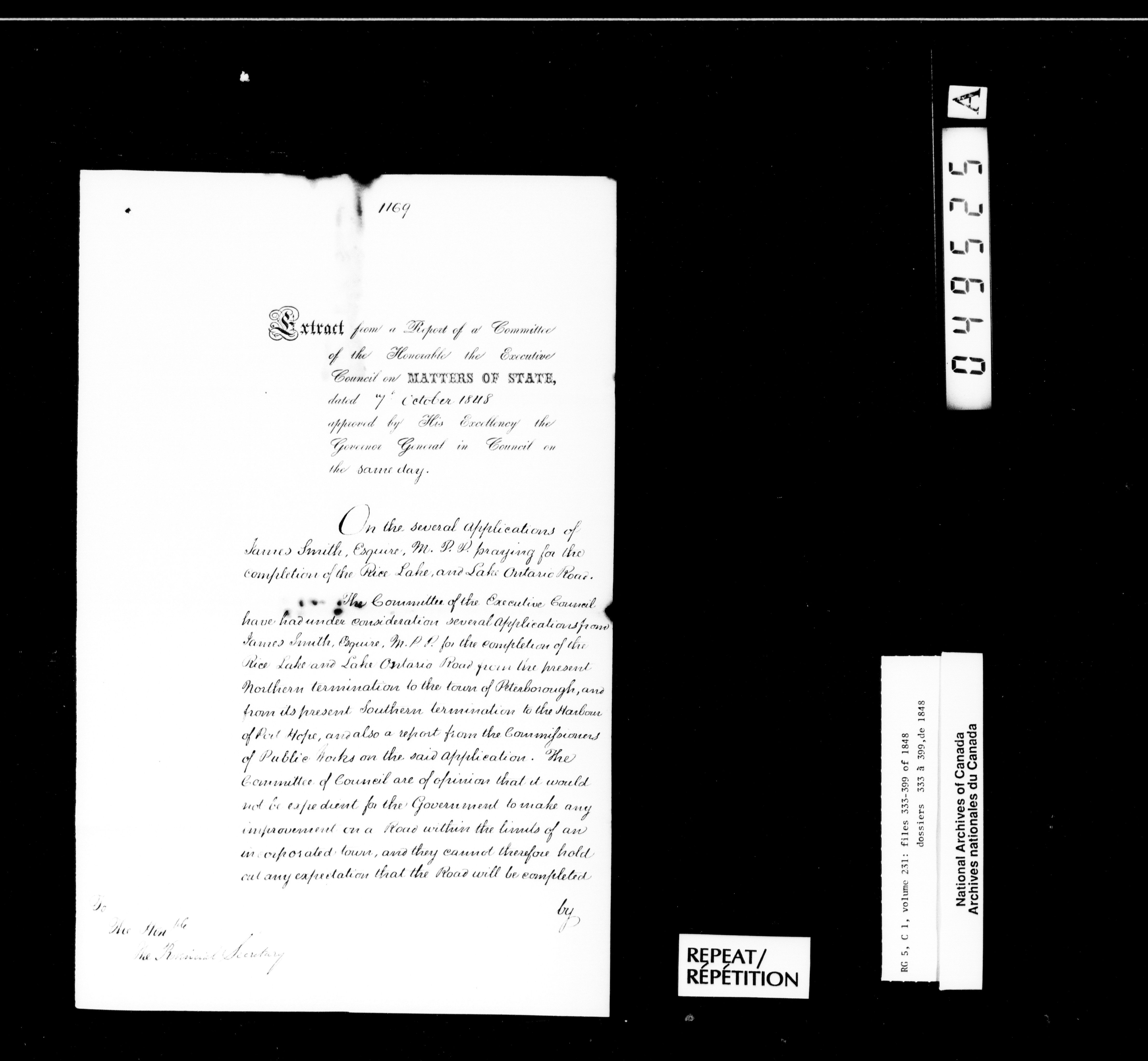 Canada West : Provincial Secretary, numbered correspondence files, 1844 to 1867 : H-2384