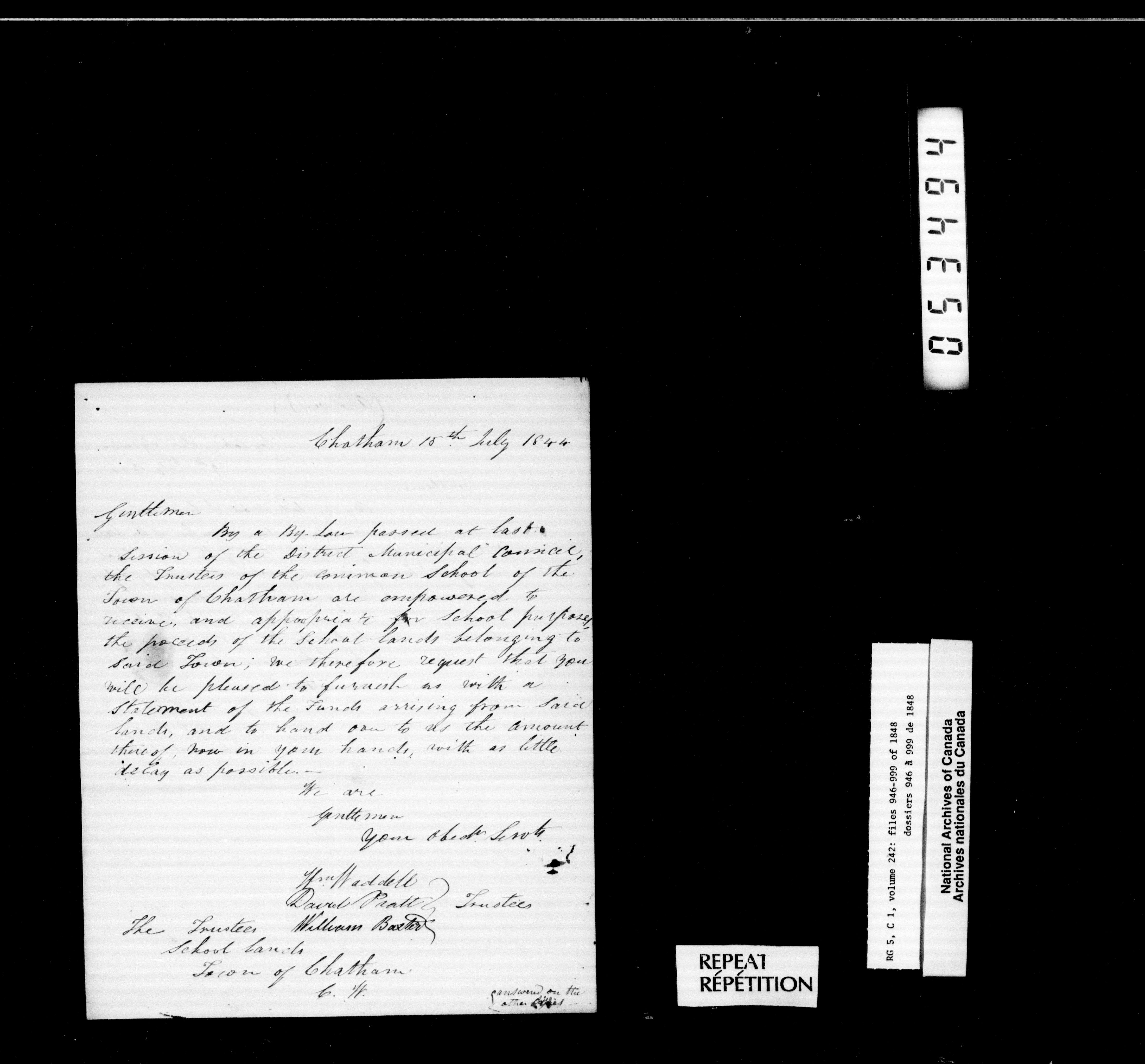 Canada West : Provincial Secretary, numbered correspondence files, 1844 to 1867 - 2386