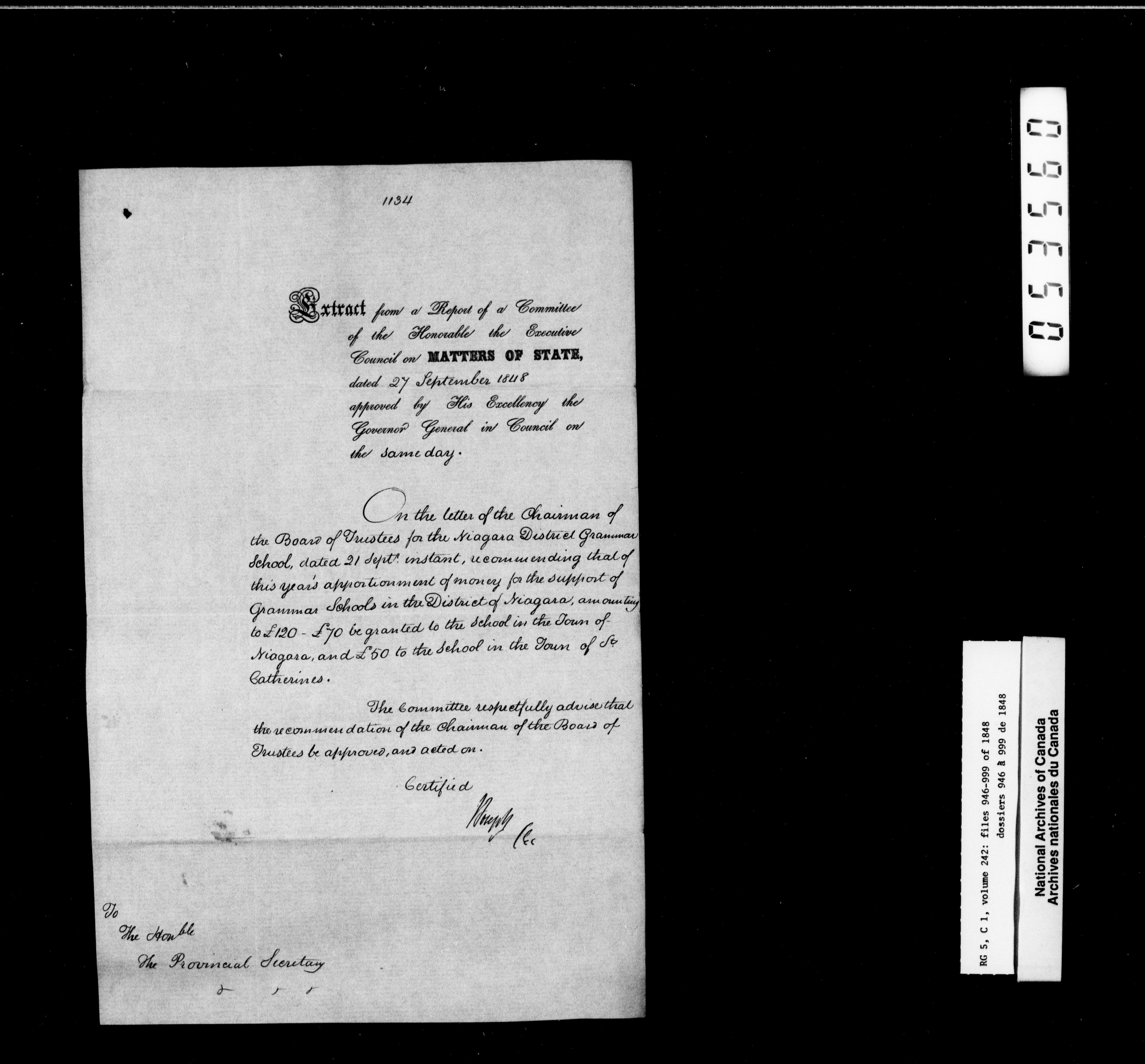 Canada West : Provincial Secretary, numbered correspondence files, 1844 to 1867 - 2387