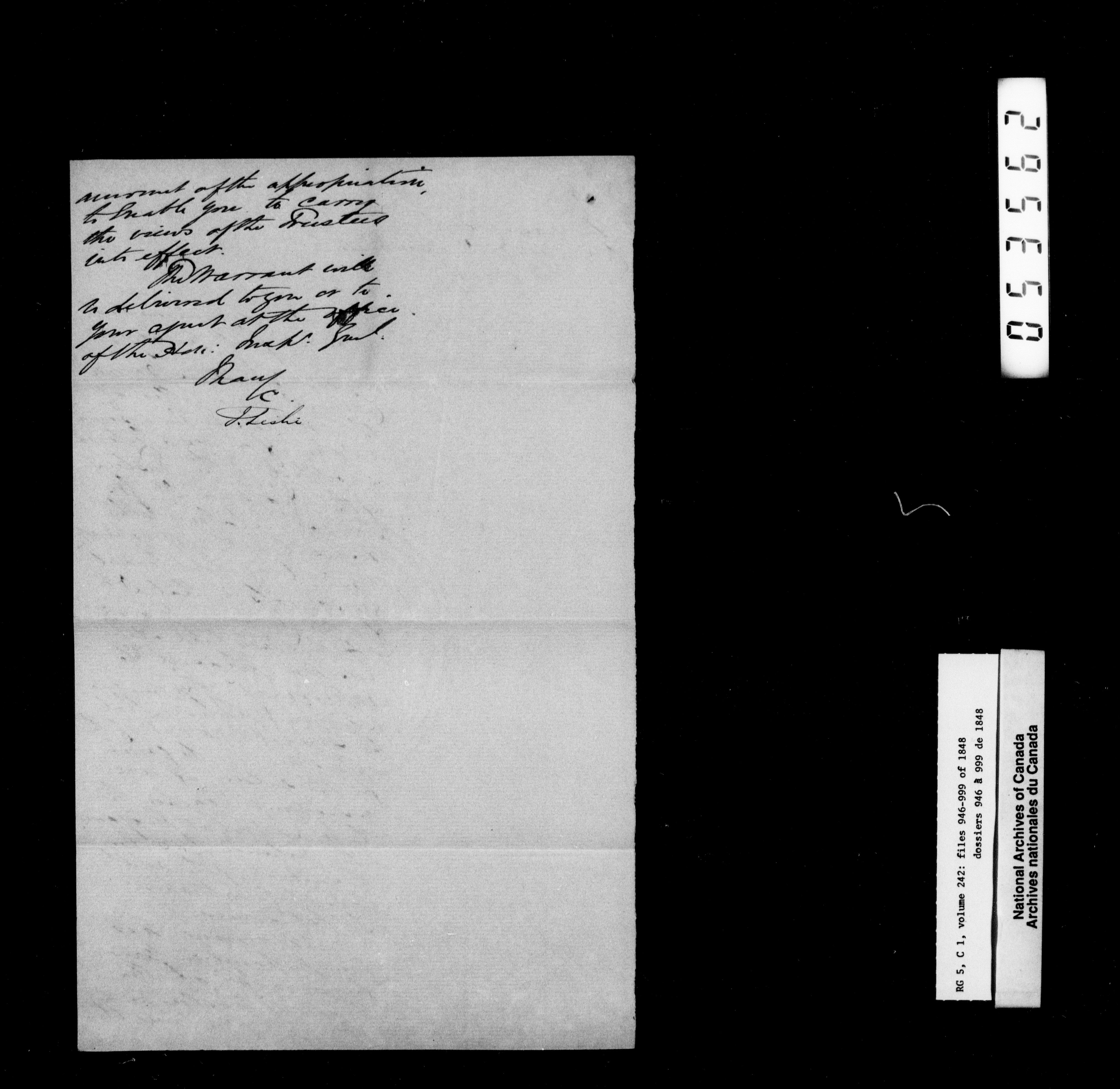 Canada West : Provincial Secretary, numbered correspondence files, 1844 to 1867 : H-2387