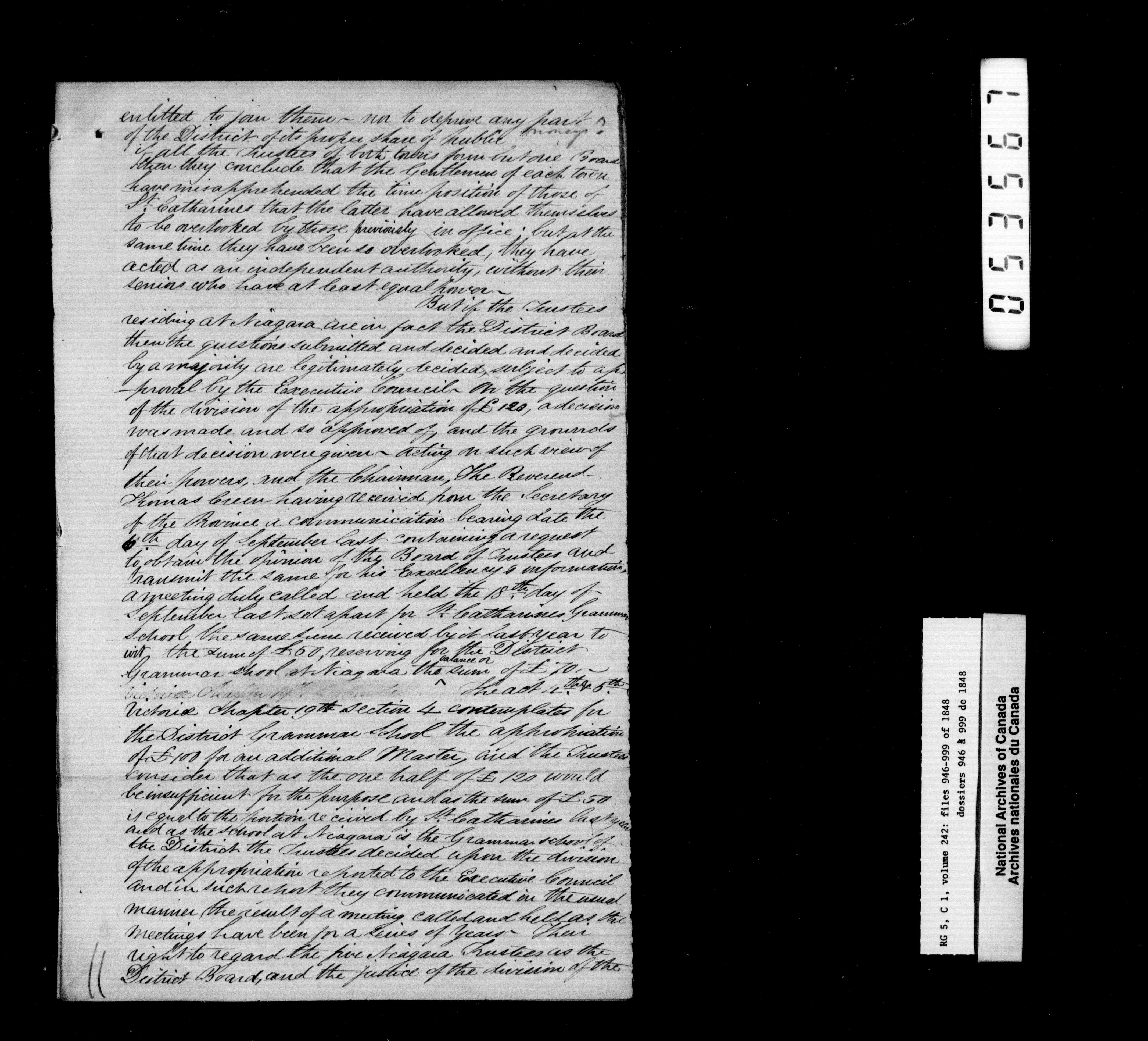 Canada West : Provincial Secretary, numbered correspondence files, 1844 to 1867 - 2387
