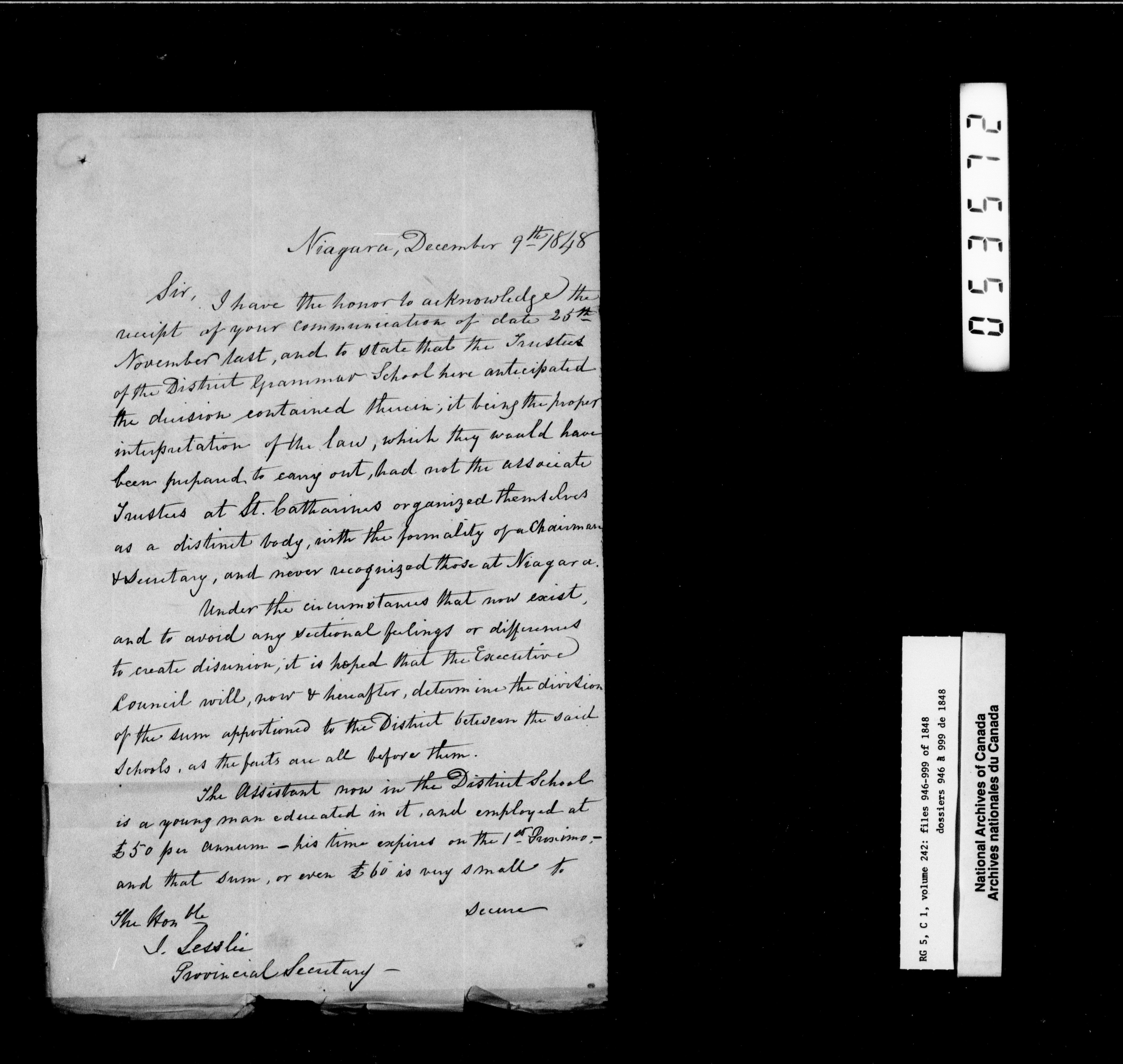 Canada West : Provincial Secretary, numbered correspondence files, 1844 to 1867 - 2387