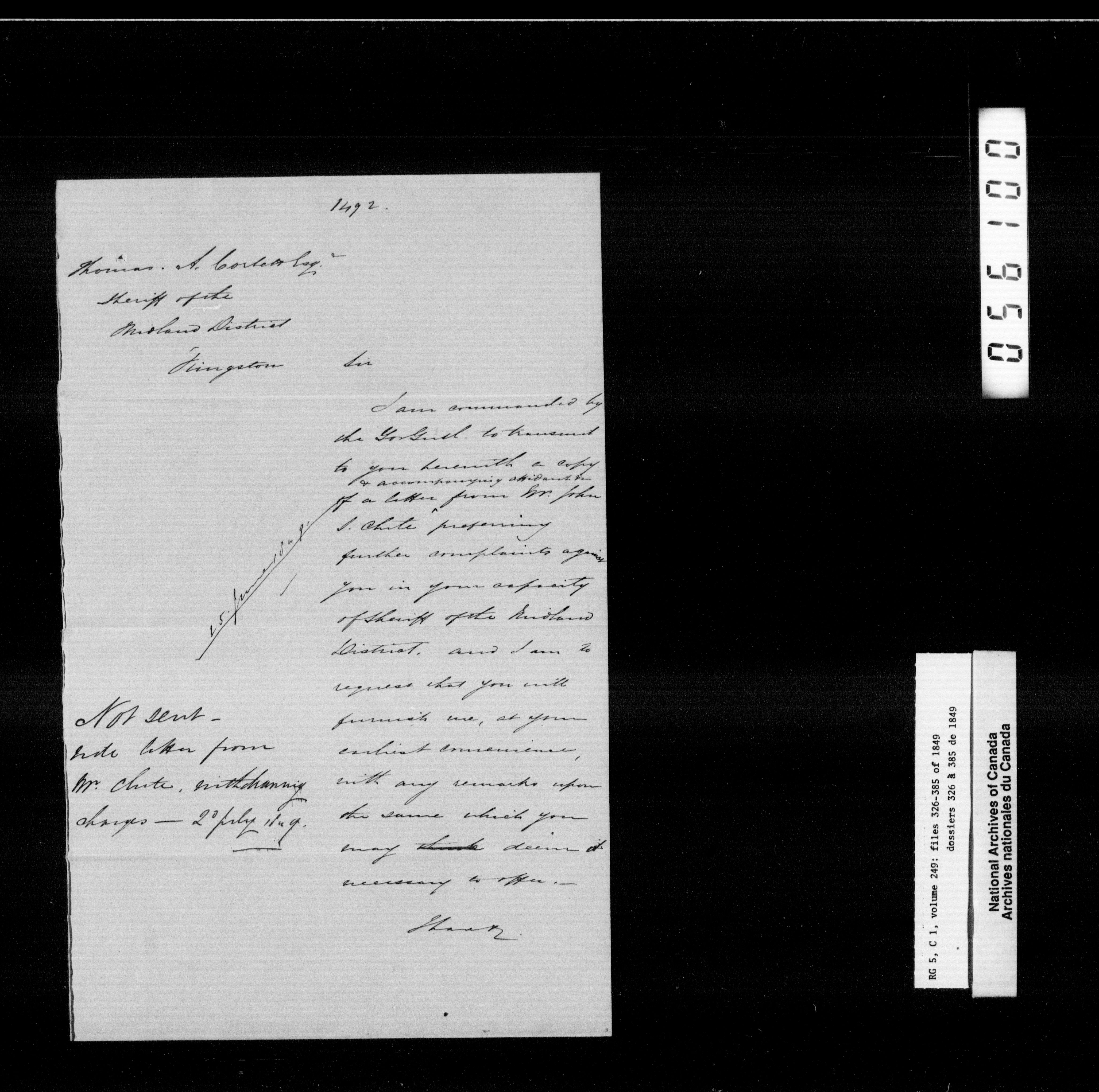Canada West : Provincial Secretary, numbered correspondence files, 1844 to 1867 - 2388