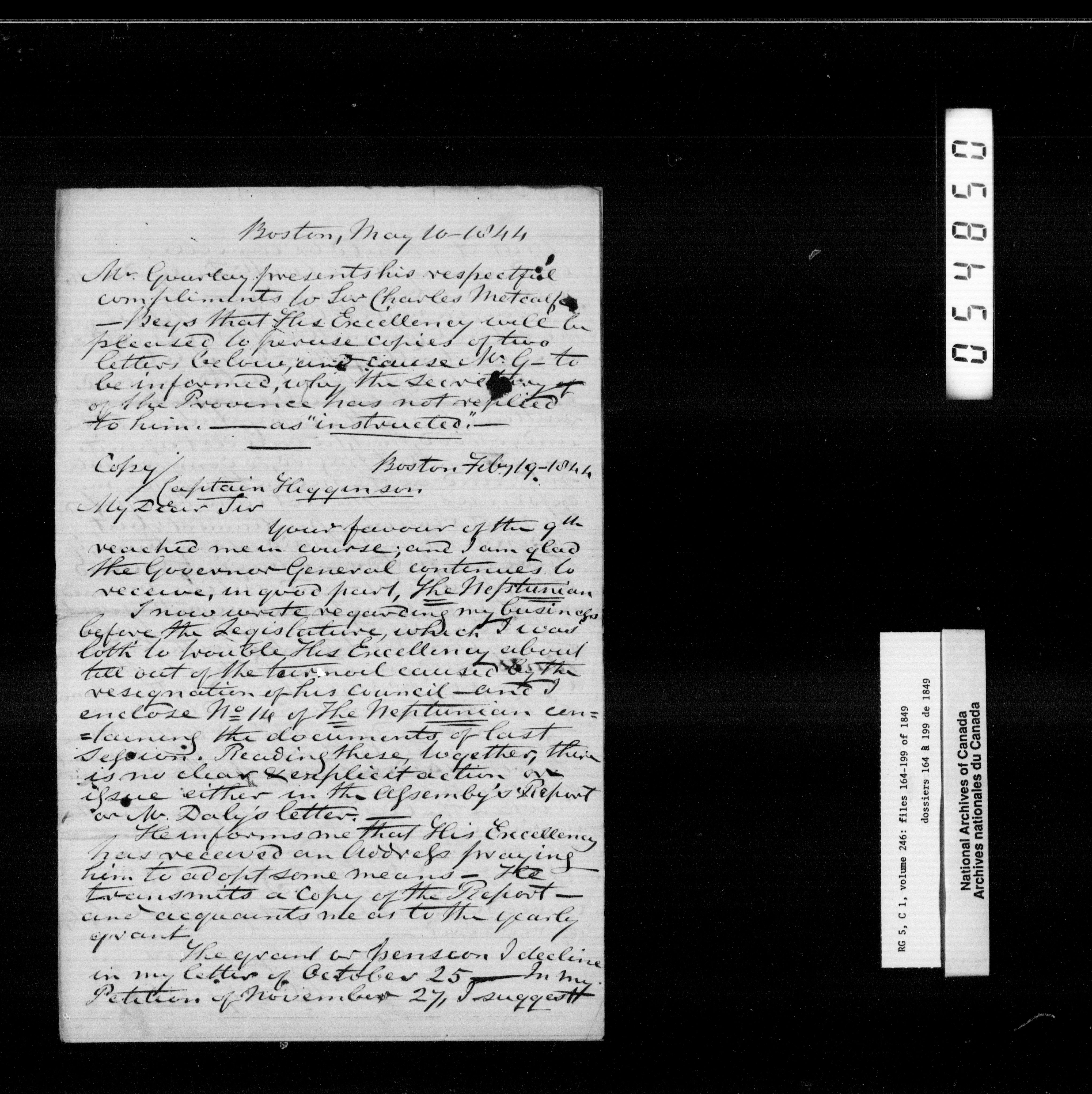 Canada West : Provincial Secretary, numbered correspondence files, 1844 to 1867 - 2388