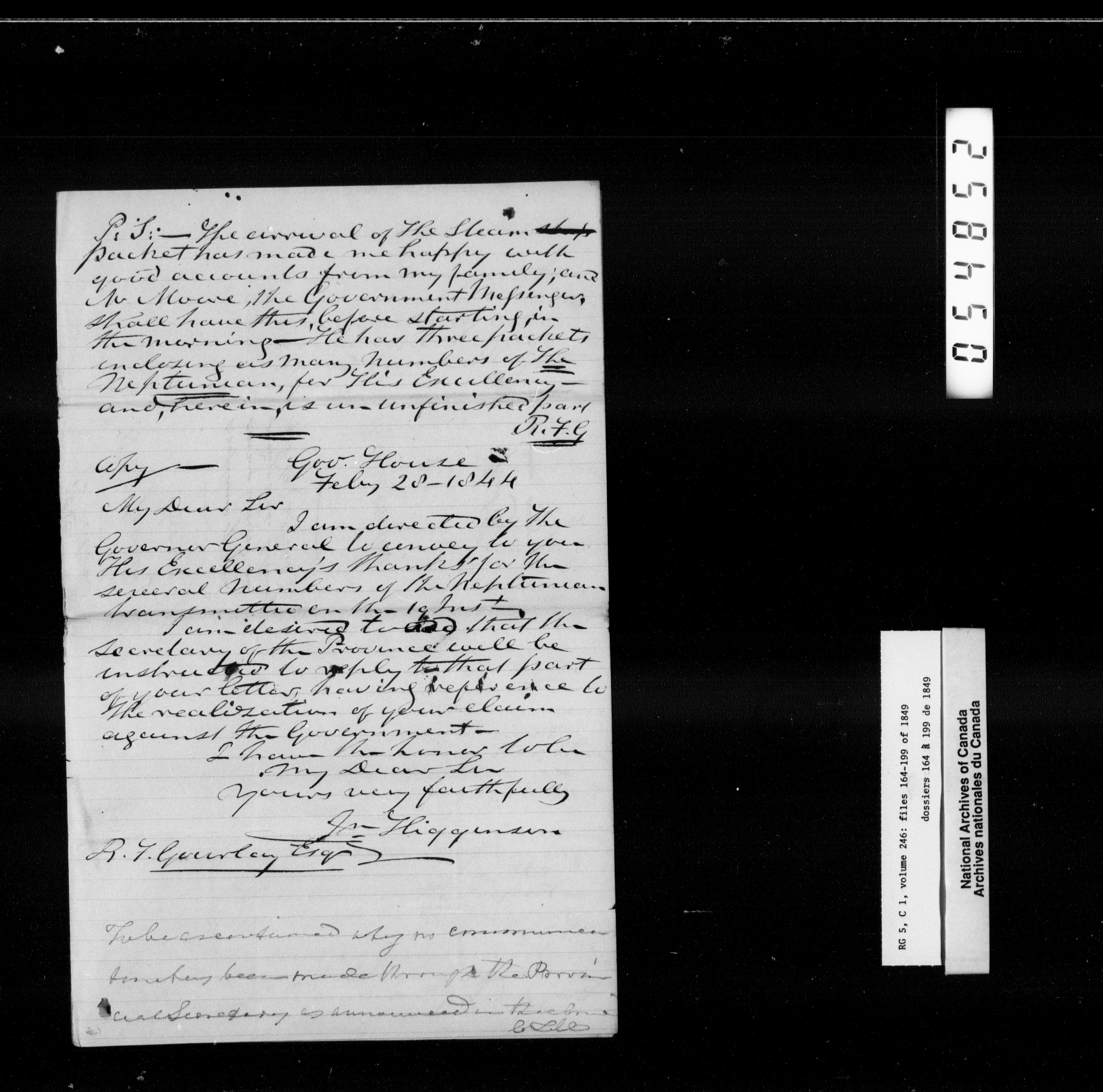 Canada West : Provincial Secretary, numbered correspondence files, 1844 to 1867 - 2388