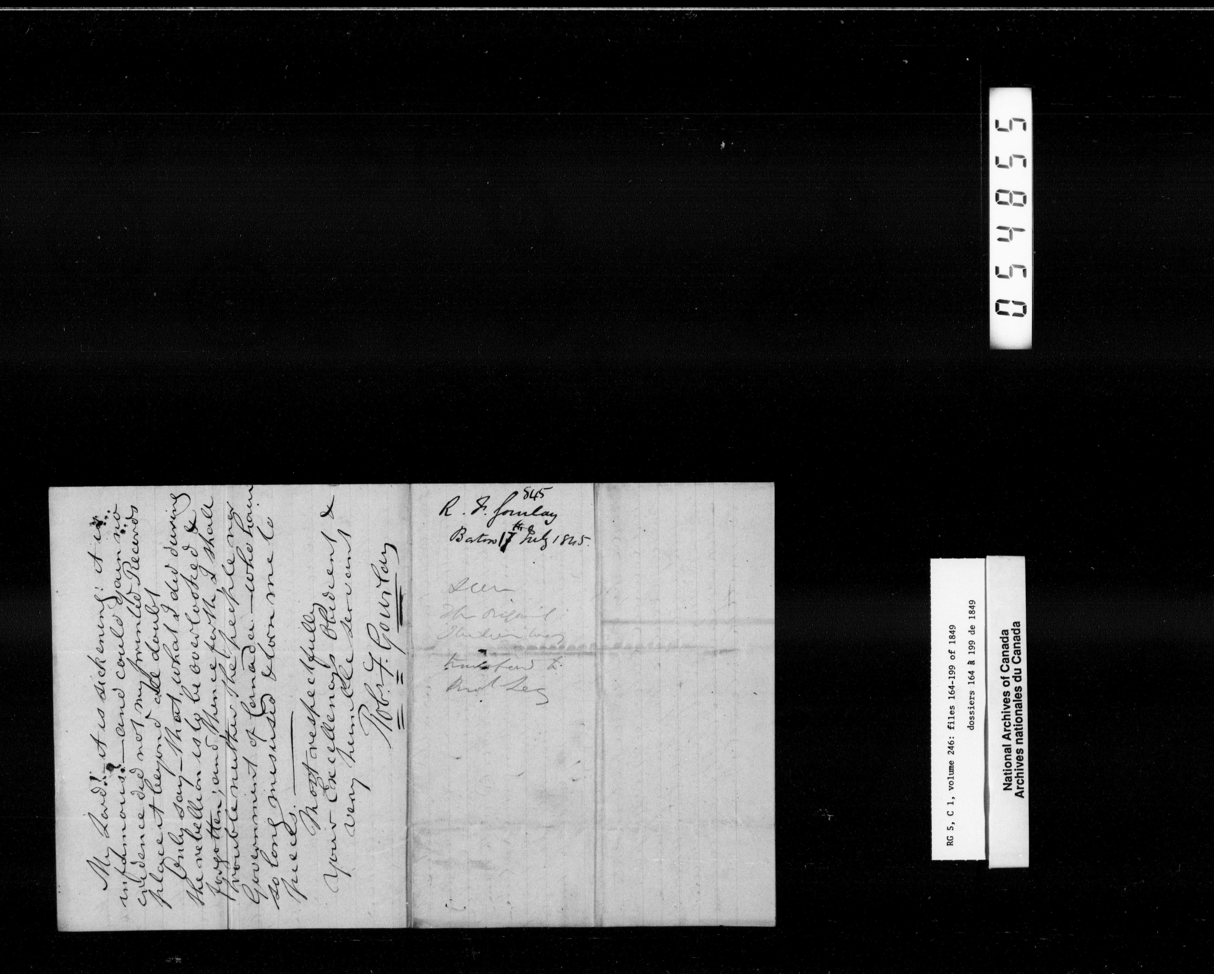 Canada West : Provincial Secretary, numbered correspondence files, 1844 to 1867 - 2388
