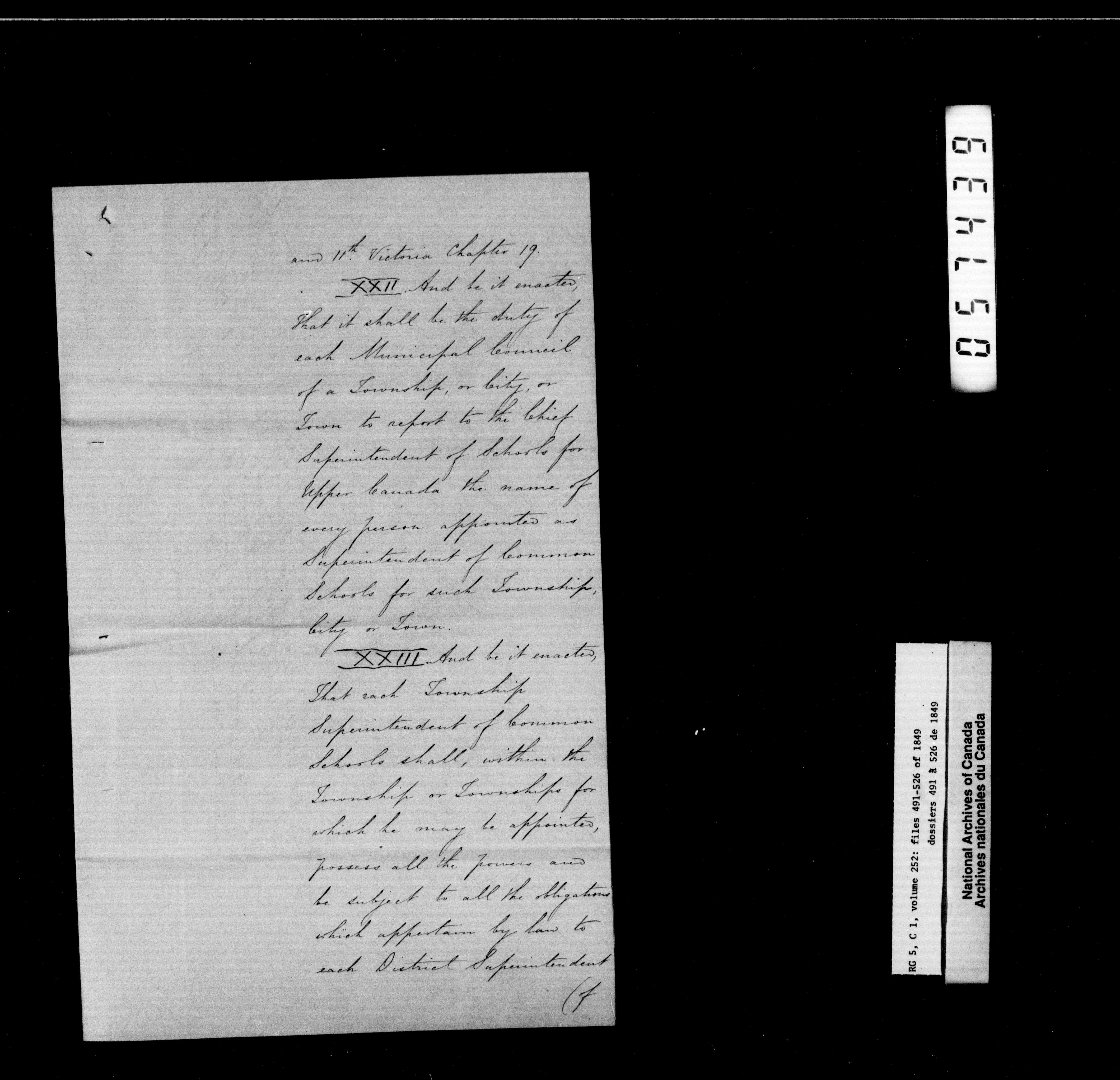 Canada West : Provincial Secretary, numbered correspondence files, 1844 to 1867 - 2389