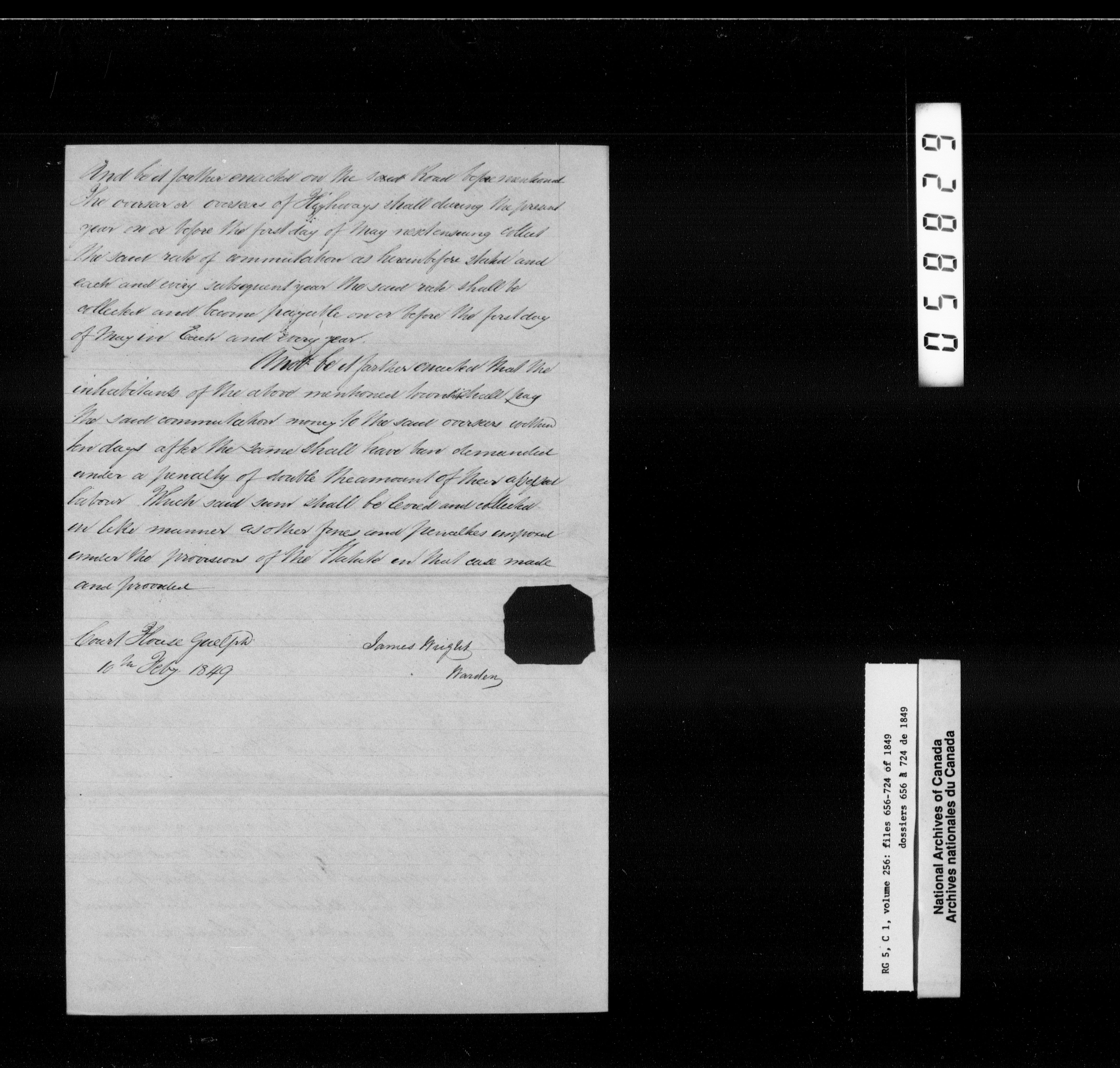 Canada West : Provincial Secretary, numbered correspondence files, 1844 to 1867 - 2390