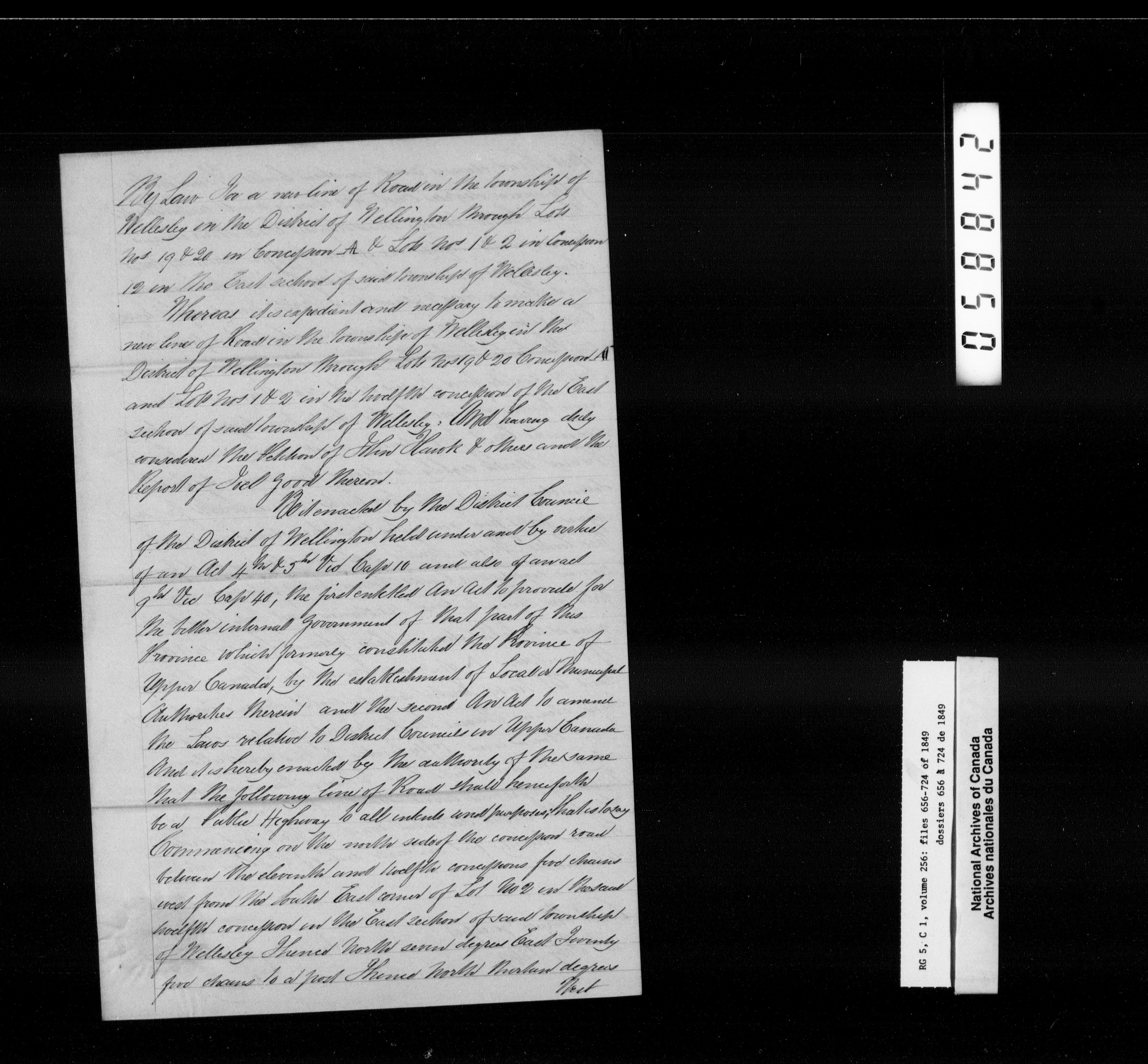 Canada West : Provincial Secretary, numbered correspondence files, 1844 to 1867 - 2390