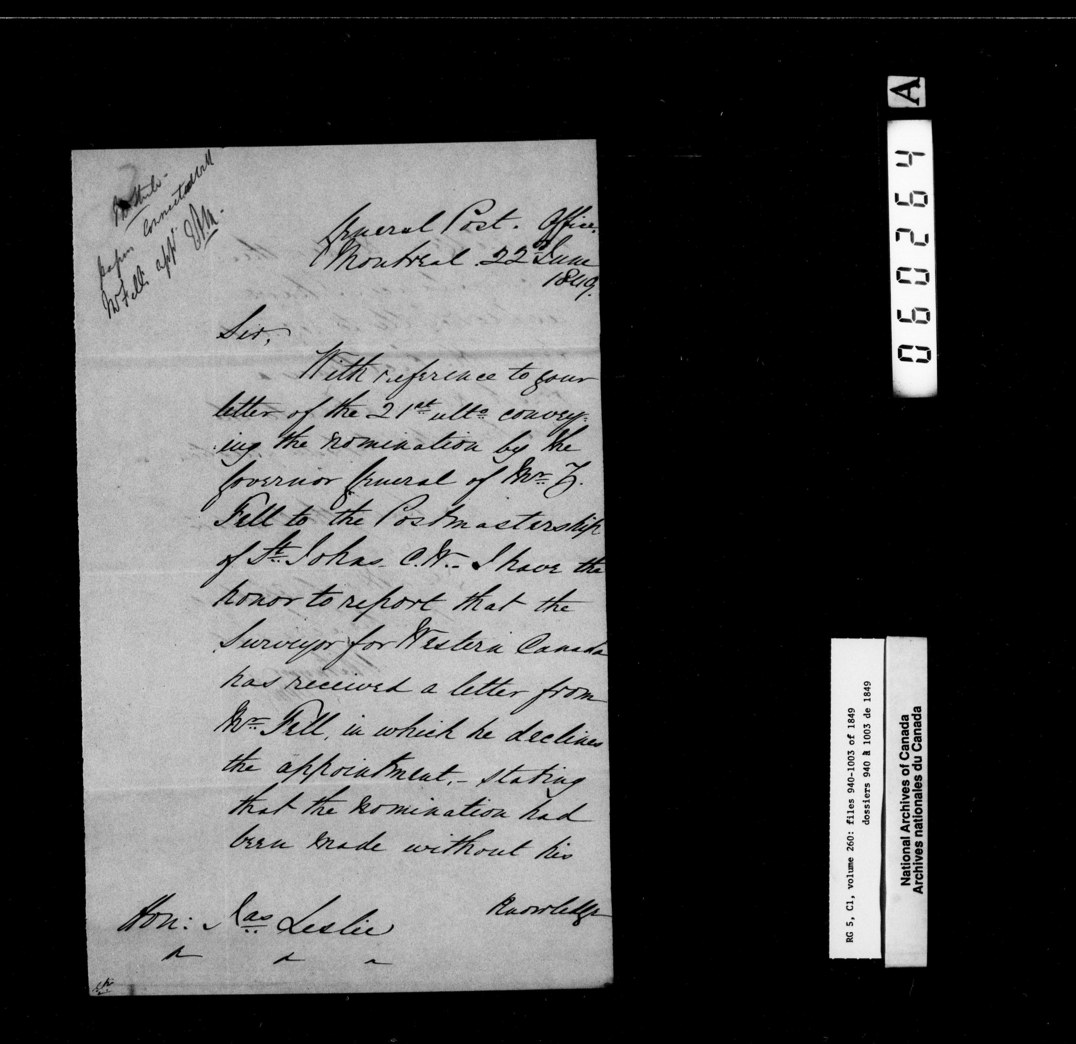 Canada West : Provincial Secretary, numbered correspondence files, 1844 to 1867 - 2392
