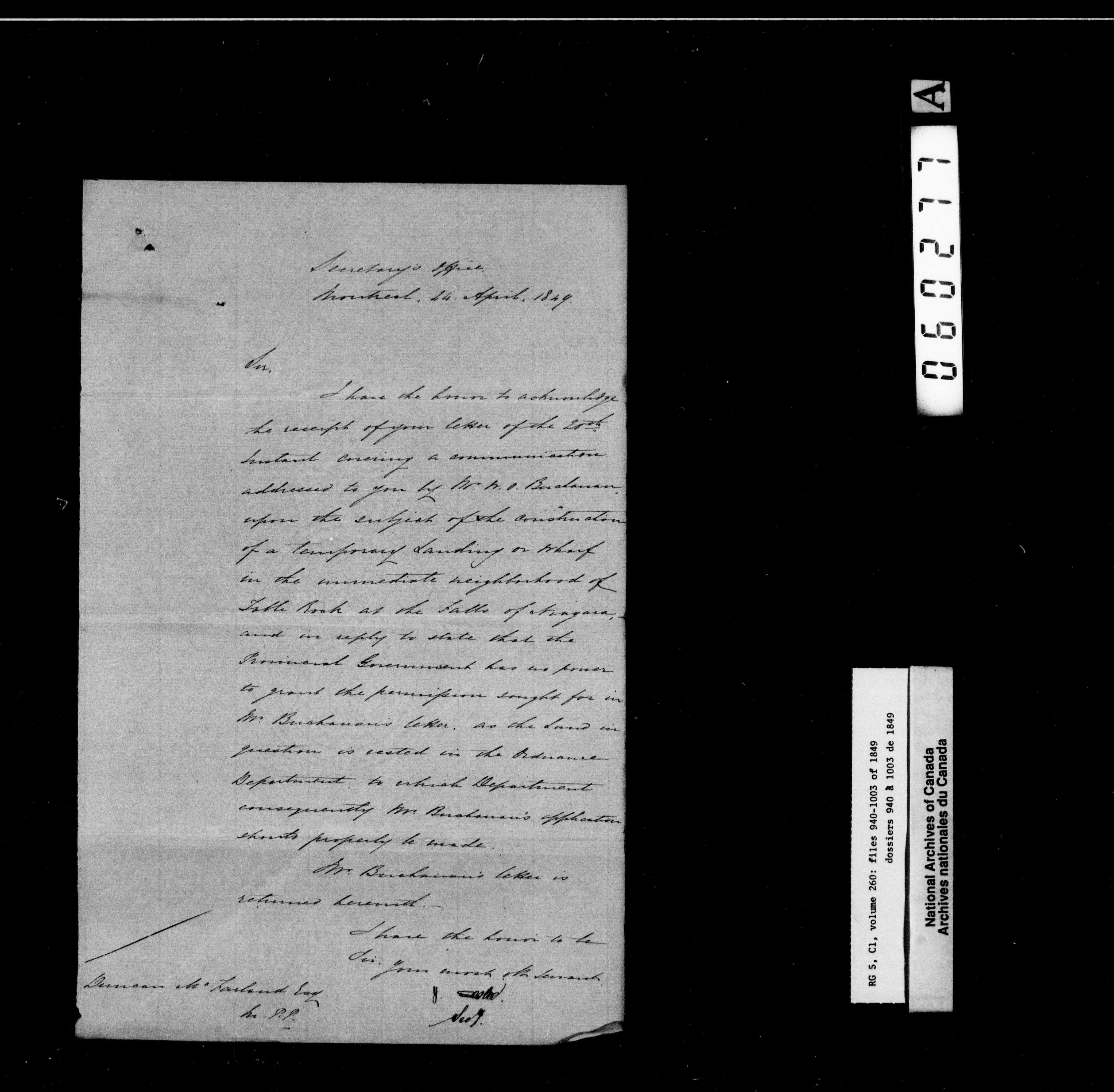 Canada West : Provincial Secretary, numbered correspondence files, 1844 to 1867 - 2392