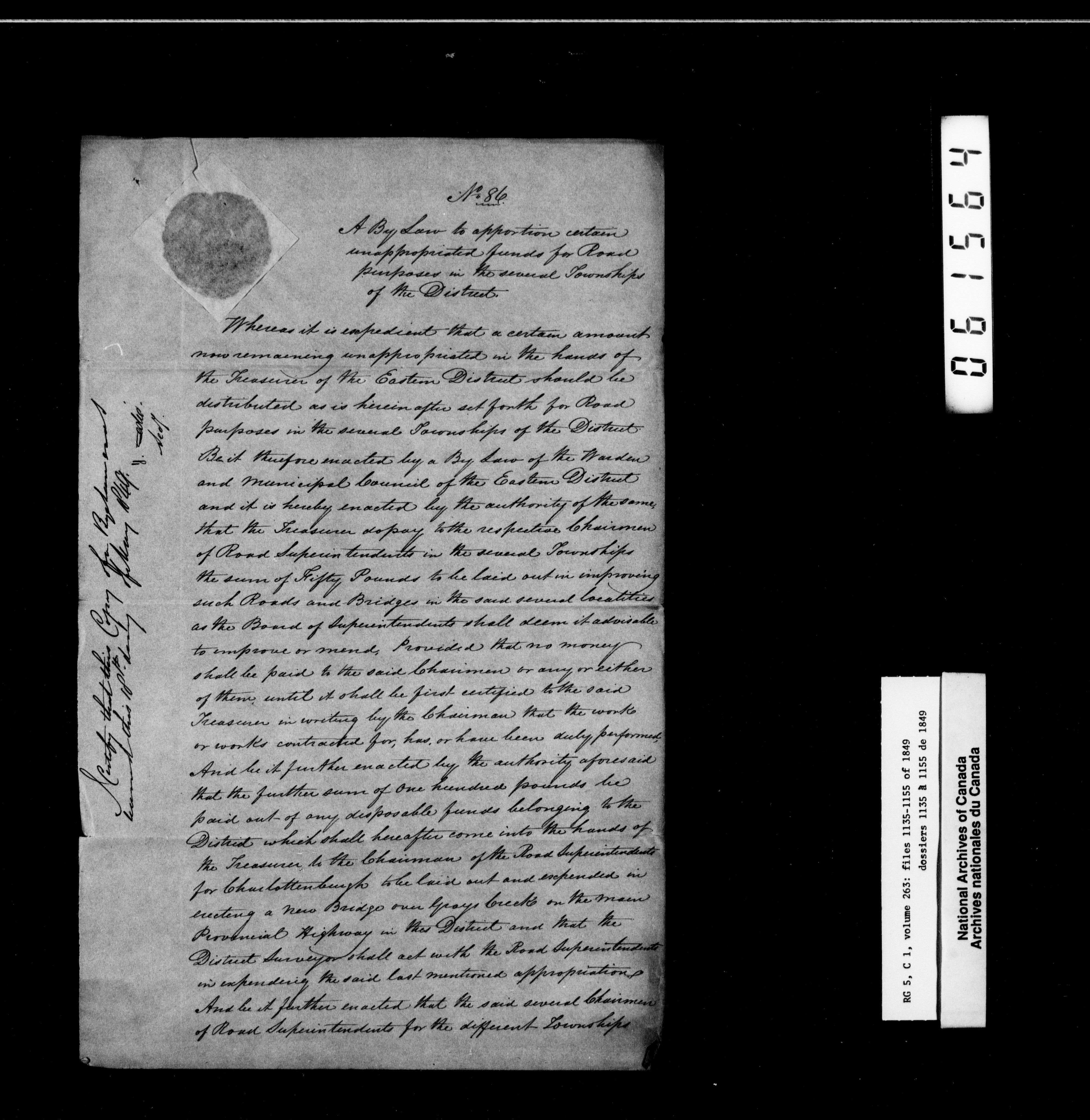Canada West : Provincial Secretary, numbered correspondence files, 1844 to 1867 - 2393