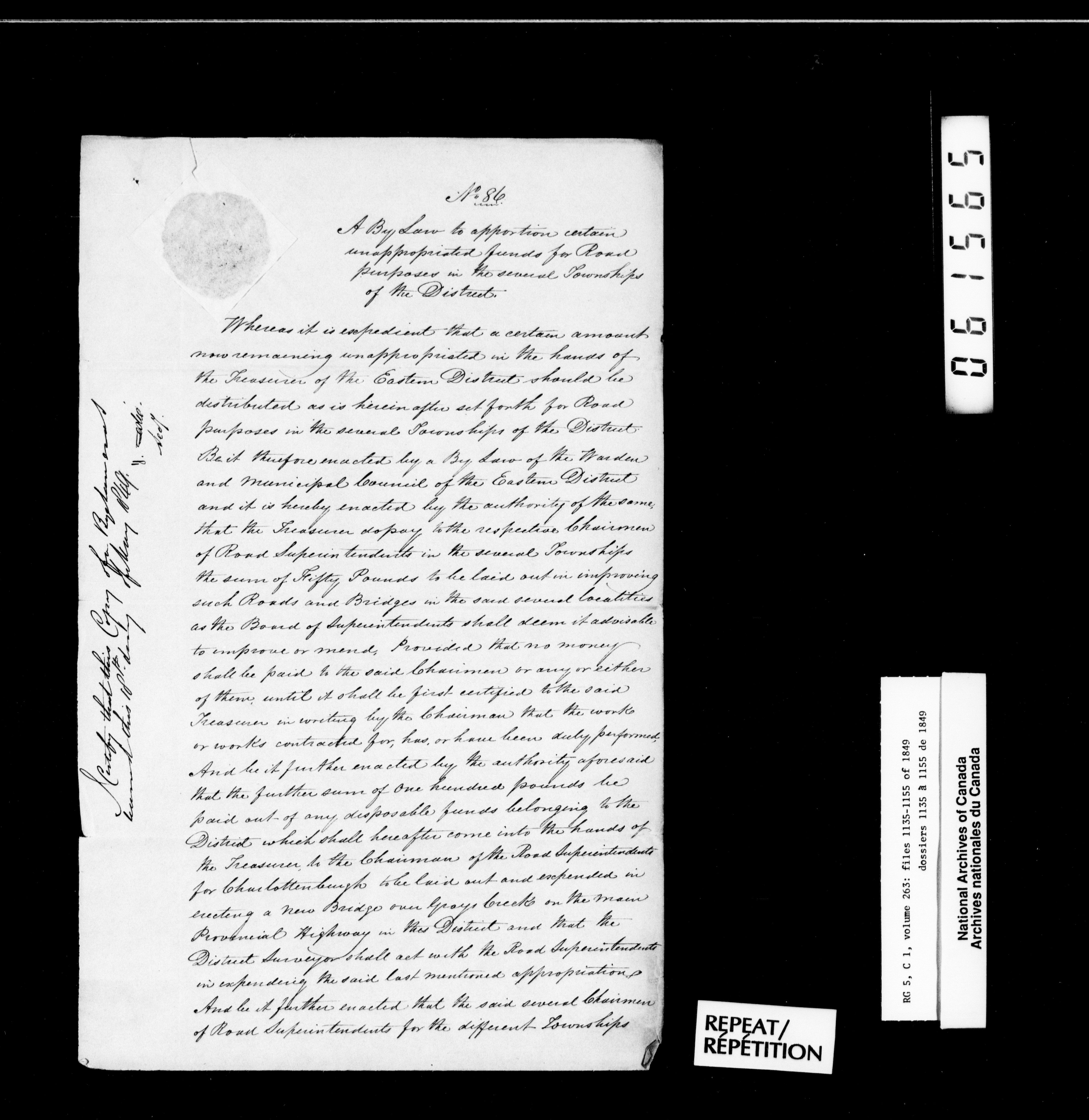 Canada West : Provincial Secretary, numbered correspondence files, 1844 to 1867 - 2393