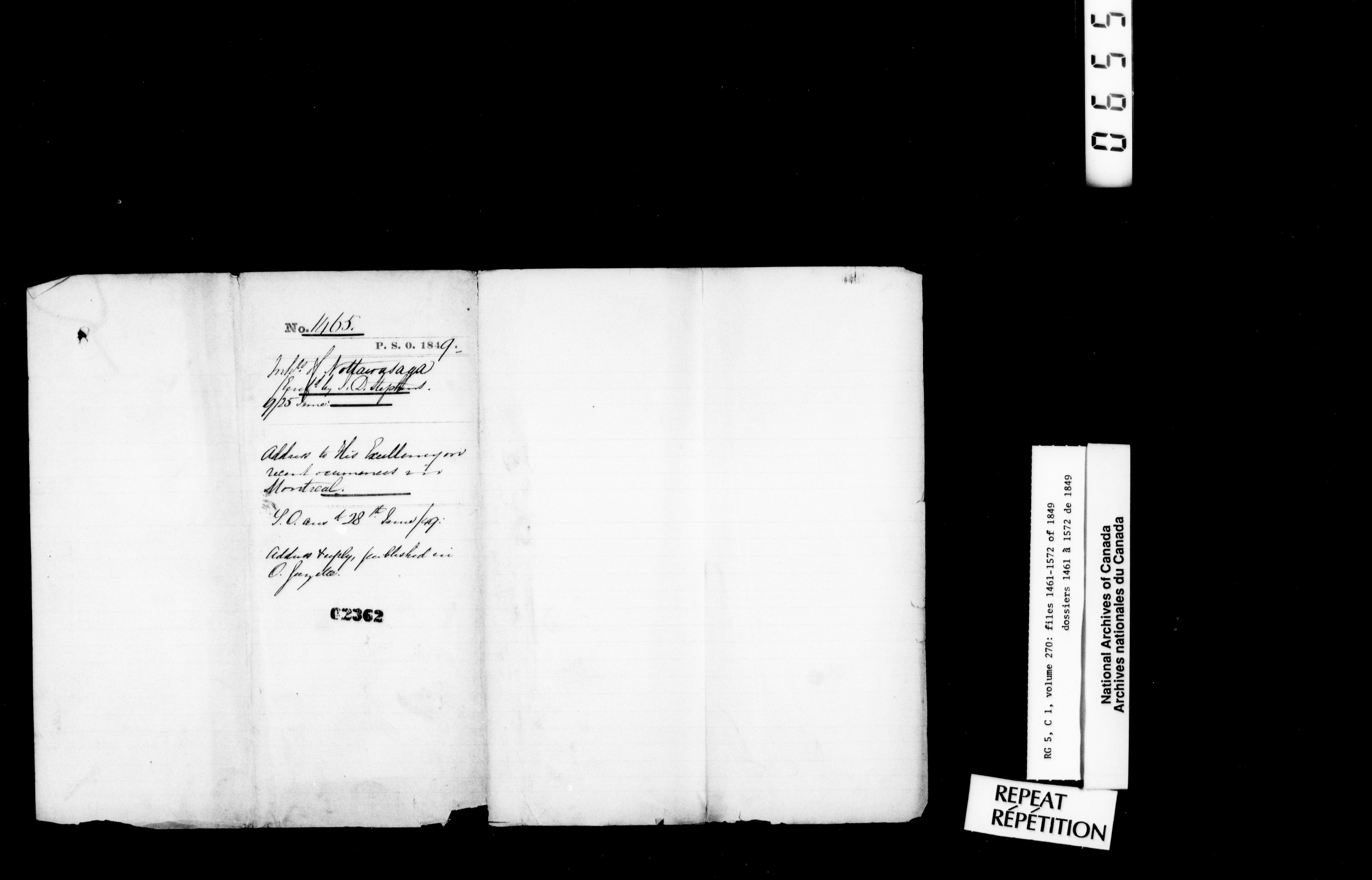 Canada West : Provincial Secretary, numbered correspondence files, 1844 to 1867 - 2396