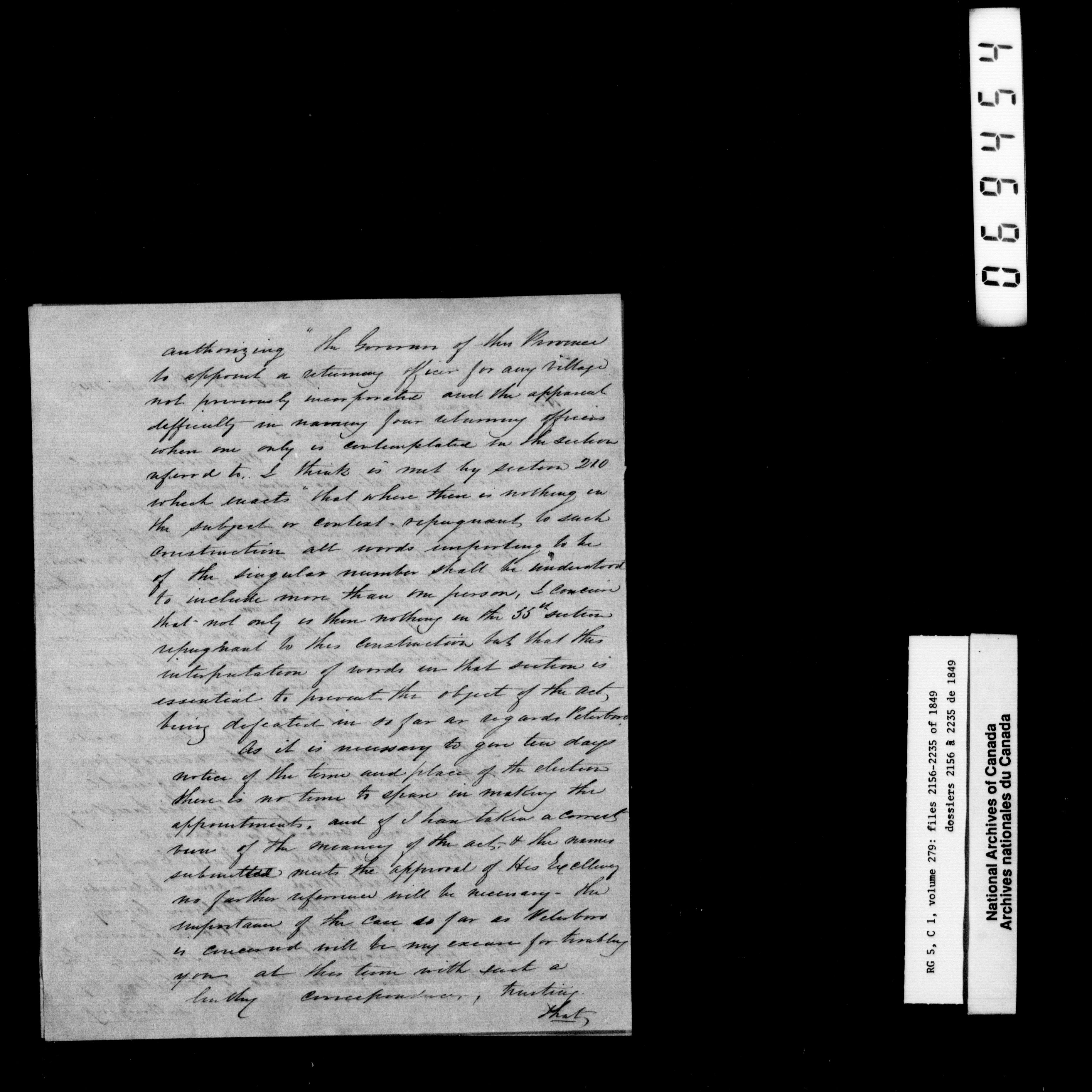 Canada West : Provincial Secretary, numbered correspondence files, 1844 to 1867 - 2398