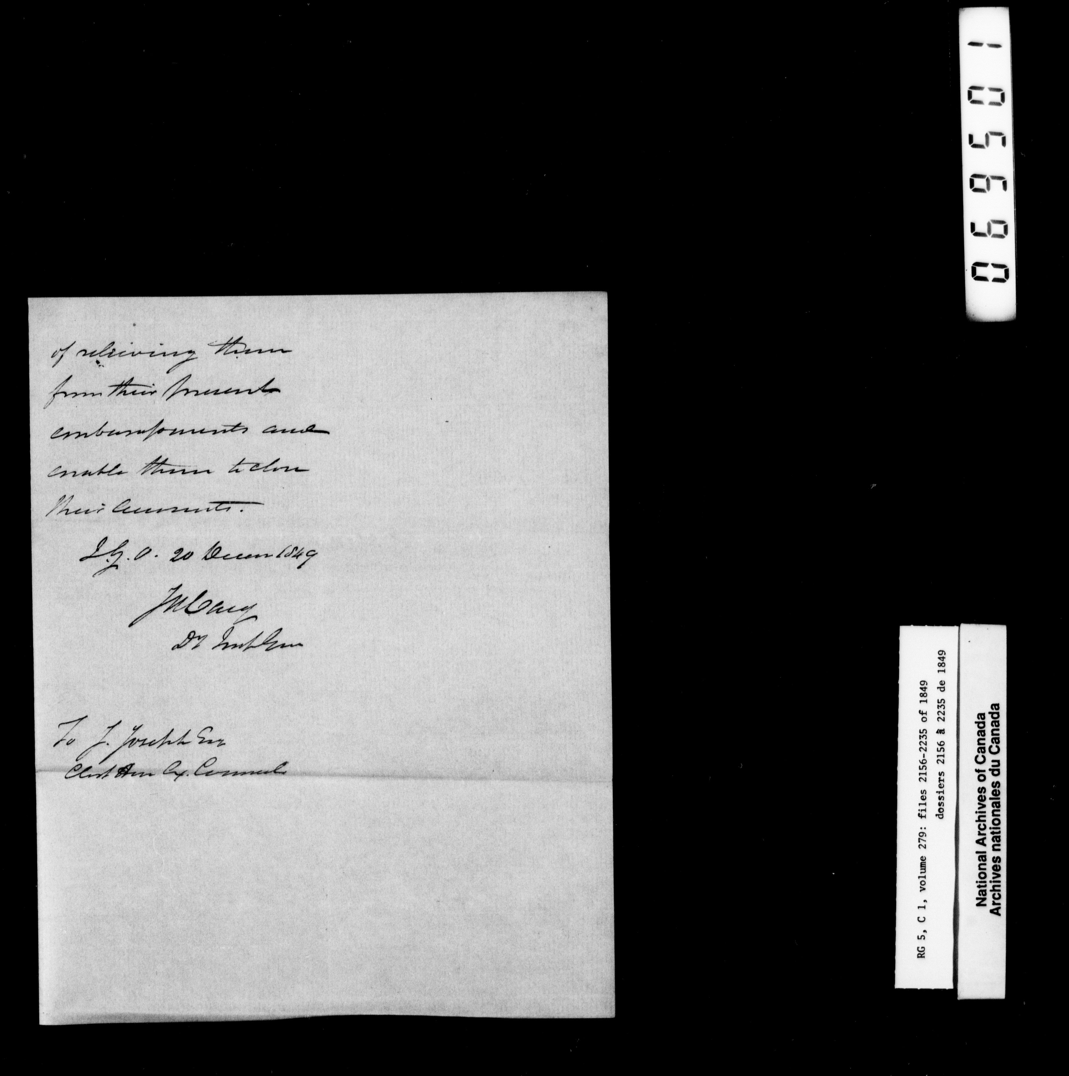 Canada West : Provincial Secretary, numbered correspondence files, 1844 to 1867 - 2398