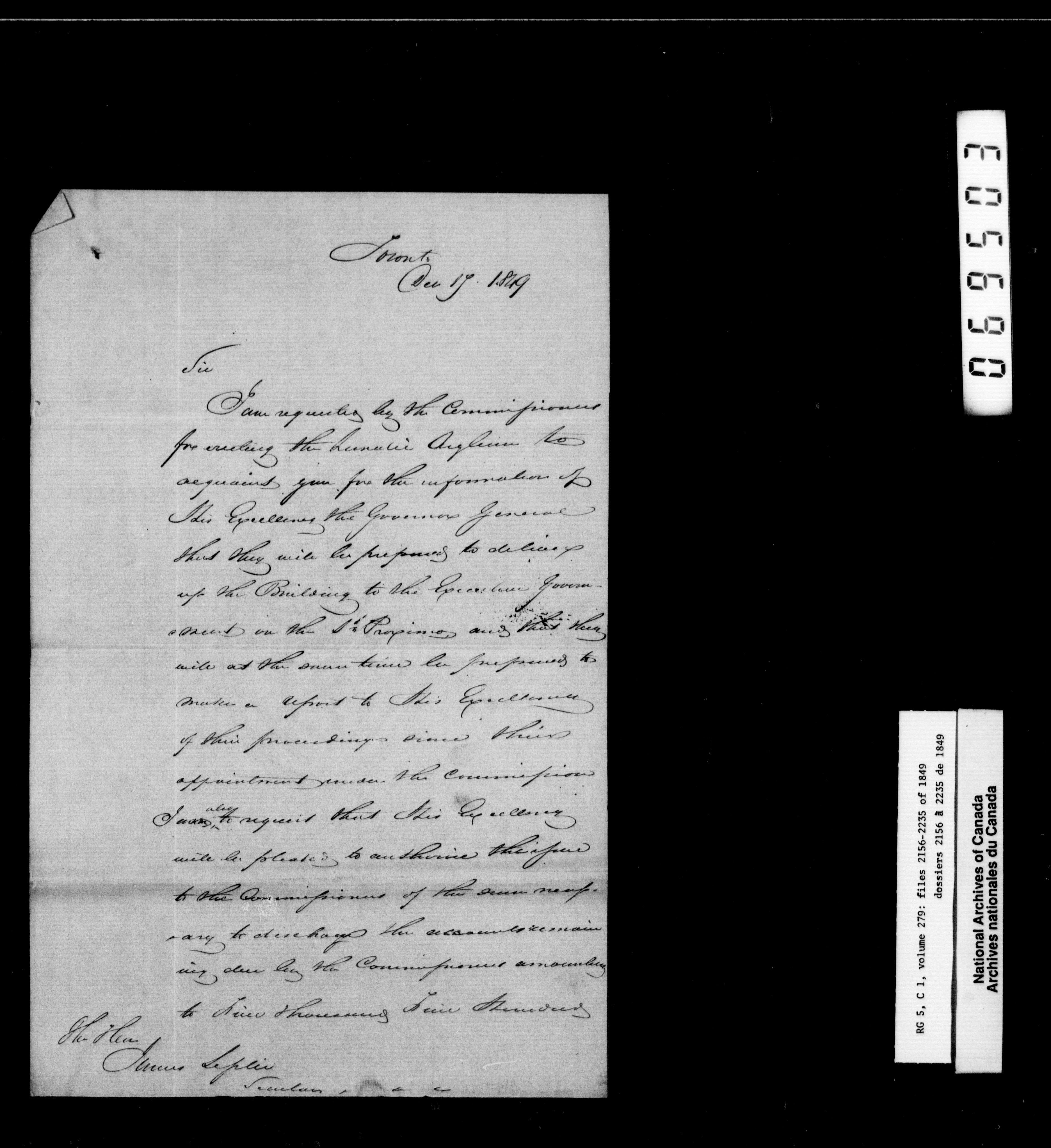 Canada West : Provincial Secretary, numbered correspondence files, 1844 to 1867 - 2398