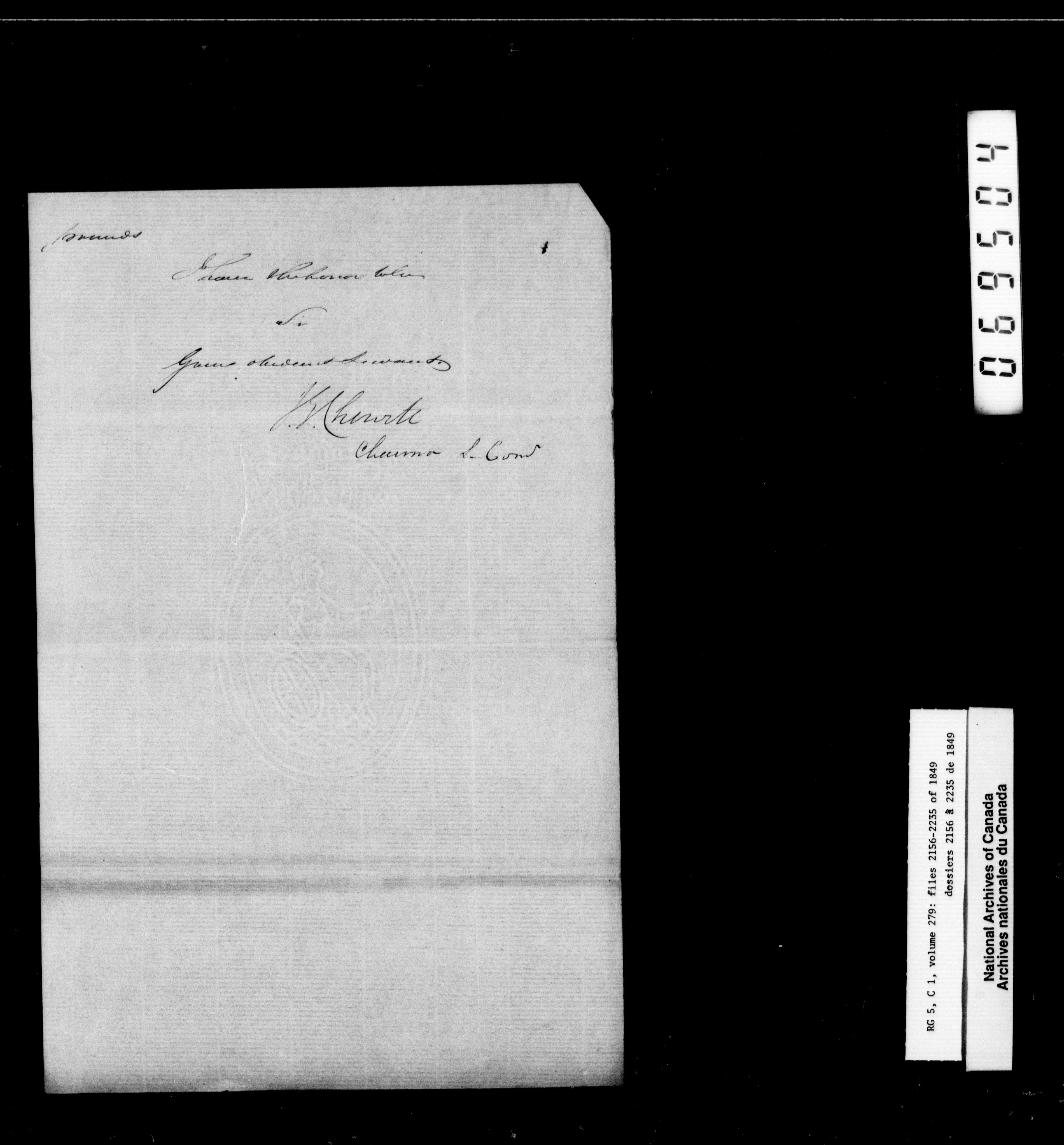 Canada West : Provincial Secretary, numbered correspondence files, 1844 to 1867 - 2398